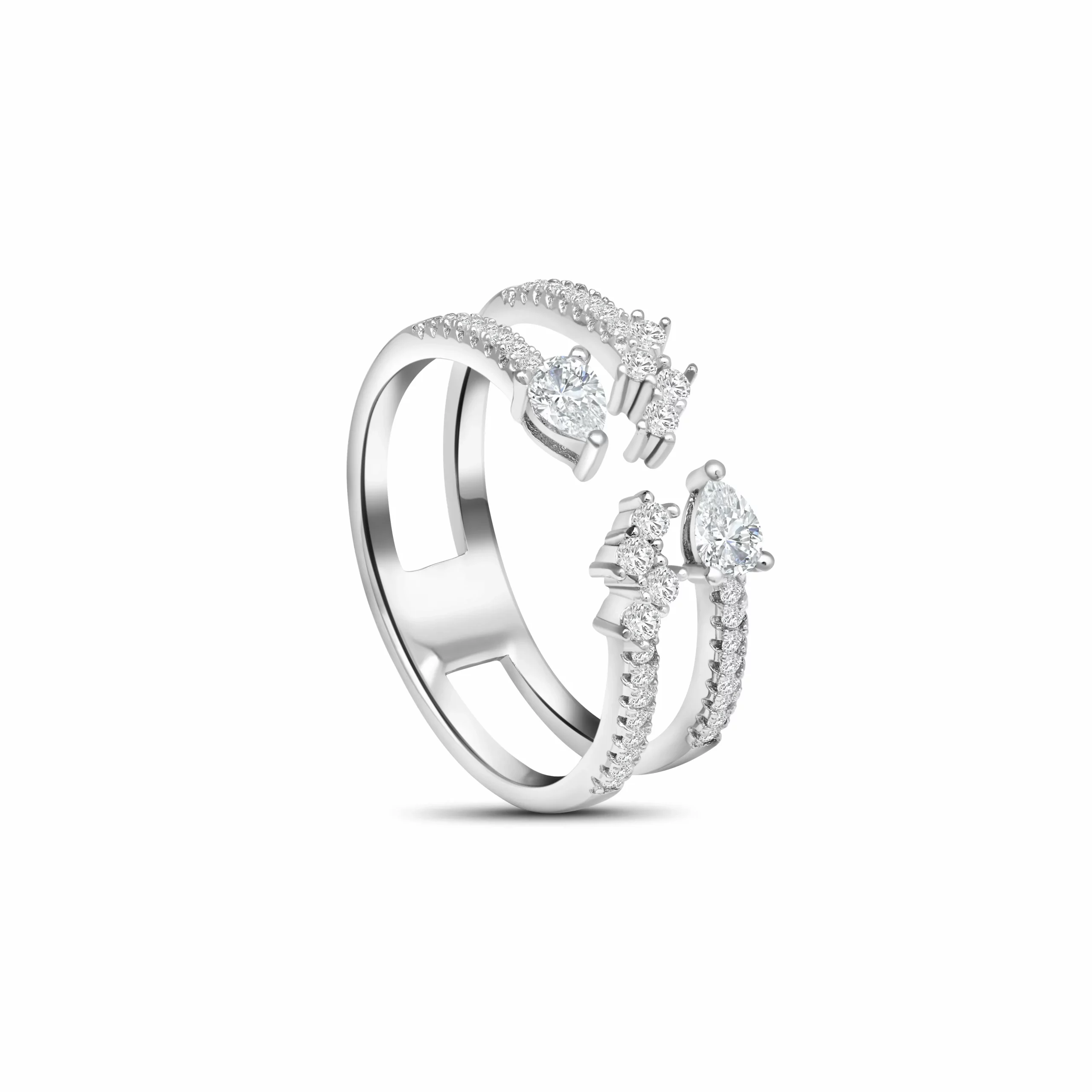 Light dances across the Astrielle Nova Ring, where cascading cuts of cubic zirconia radiate brilliance from an open split band design. Crafted in sterling silver, this modern statement ring fuses clean architectural lines with asymmetrical elegance. Pear, marquise, baguette and round stones are thoughtfully arranged to evoke shooting stars, a radiant piece that catches the eye from every angle.