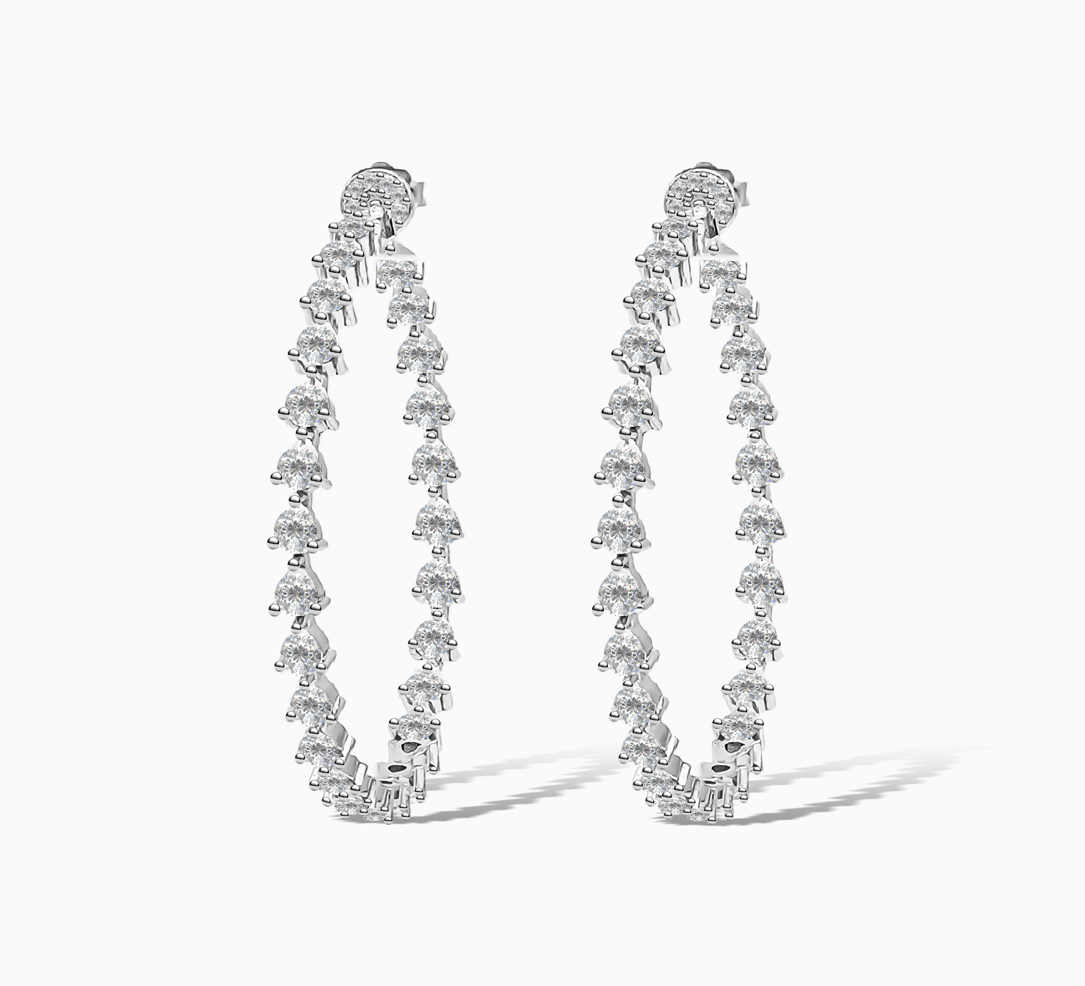 Command the room with the timeless radiance of the Aurelia Regal Hoop Earrings. These elongated oval hoop earrings are meticulously encrusted with high grade brilliant cut cubic zirconia stones, creating a continuous cascade of shimmer from every angle. Set in a luxurious sterling silver finish, they offer an elevated aesthetic that seamlessly balances grandeur with sophistication.