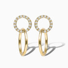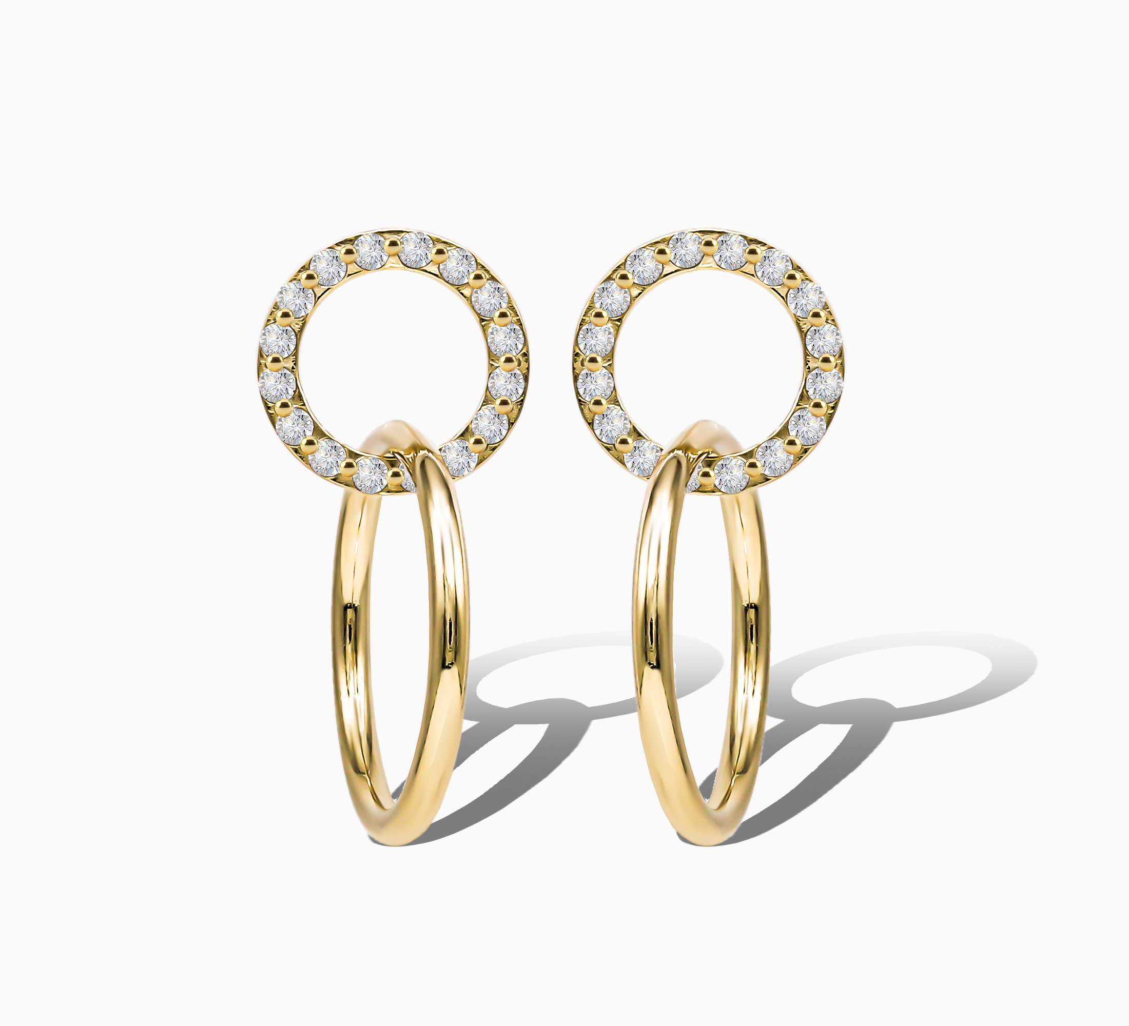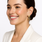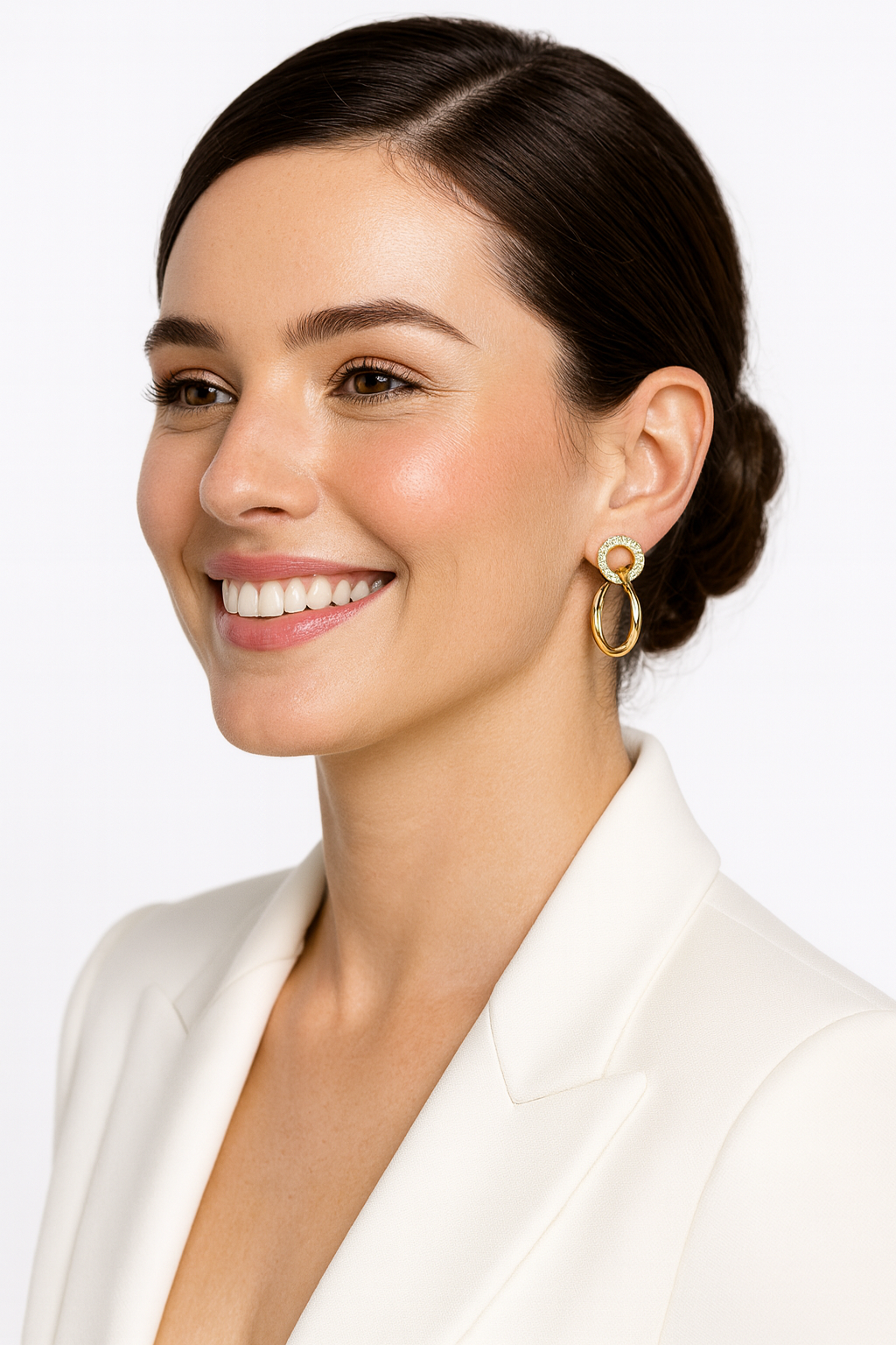 Step into the spotlight with the Auric Halo Earrings, a stunning pair of gold double hoop earrings that fuse celestial charm with contemporary luxury. Featuring a cubic zirconia studded golden halo delicately suspending a smooth, polished hoop, these earrings represent balance, infinity and radiant femininity.
