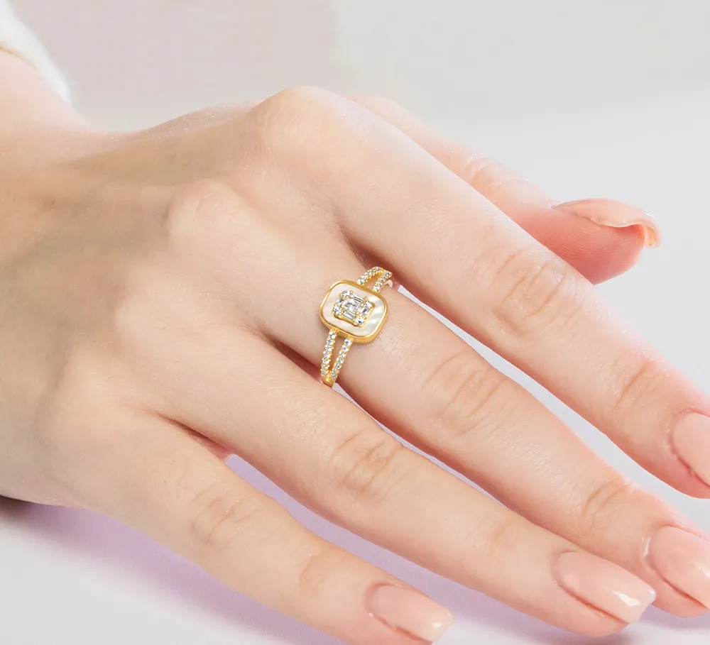 The Aurienne Halo Ring reimagines classic romance with modern elegance. Crafted in hallmarked 925 sterling silver with radiant gold plating, it features a dazzling cubic zirconia center framed by a sleek, cushion inspired bezel halo. Split pave set shoulders add brilliant sparkle, creating an effortlessly sophisticated silhouette.