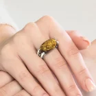 The Aurora Fossil Ring is a sublime tribute to ancient light captured in time. Centered with a majestic oval cabochon of deep golden green amber, this piece radiates natural warmth and depth. Each fleck within the stone reflects the mysterious glow of fossilised resin, telling stories from millennia past. Set in a sculptural sterling silver claw setting.