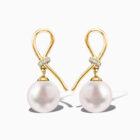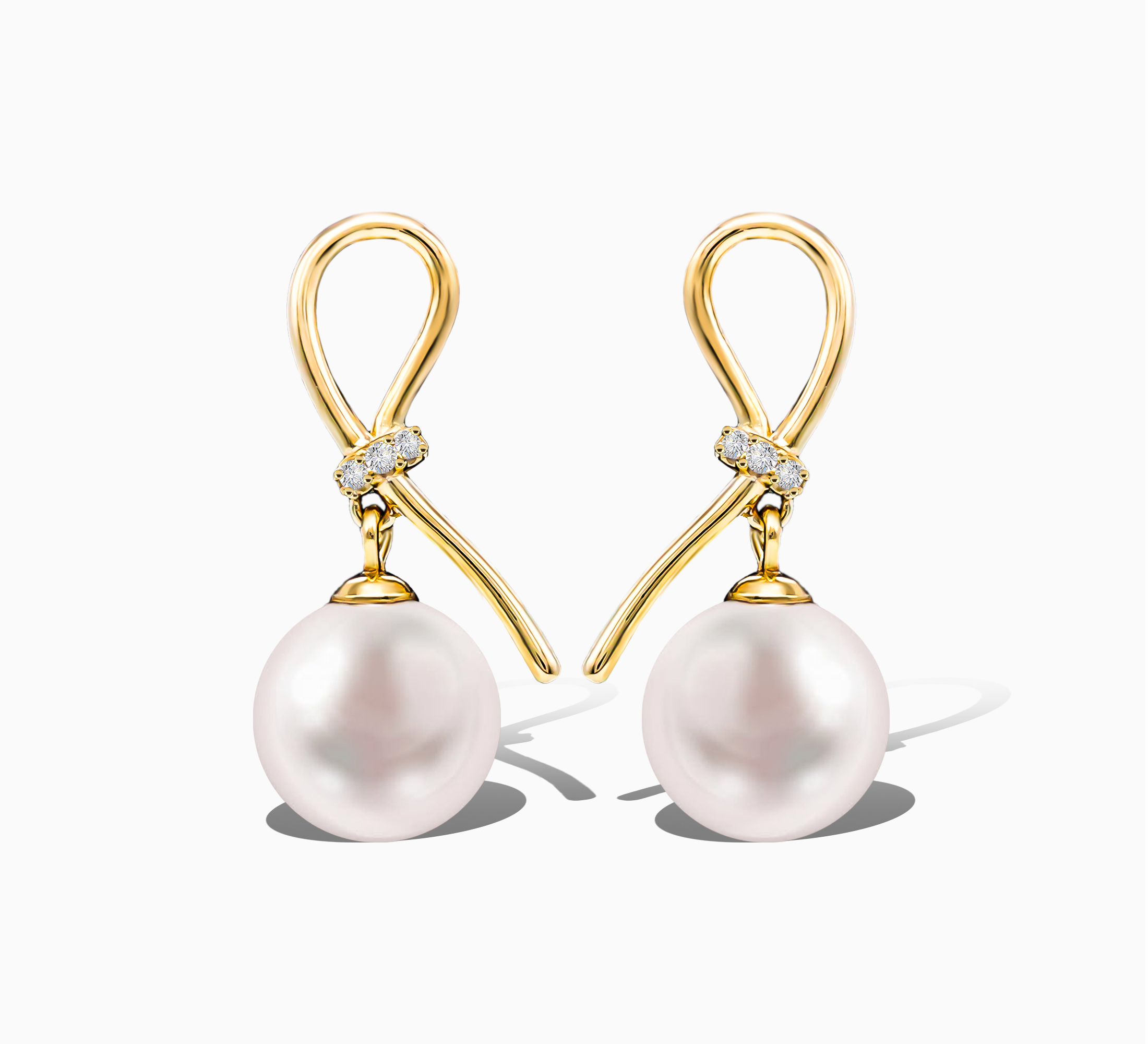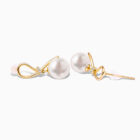 The Aurora Ribbon Pearl Earrings, where fluid gold curves form a sculpted ribbon silhouette, symbolic of femininity, grace and elegance. Crafted in radiant gold plating, these earrings delicately loop into a modern ribbon shape, embellished with a trio of micro pave cubic zirconia stones for just the right amount of sparkle.