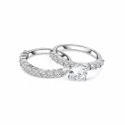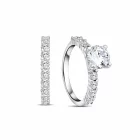 The Aveline Set Ring is a timeless expression of enduring love and classic sophistication. Crafted in hallmarked 925 sterling silver, this elegant duo features a brilliant round cut cubic zirconia solitaire engagement ring with a shared prong band of sparkling accents, perfectly matched by a full eternity style wedding band for seamless beauty.