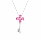 Unlock elegance with the Blush Bloom Key Pendant, where radiant pink gemstones form a floral crown atop a sleek silver key. Symbolising love, transformation, and grace, this design pairs romantic charm with refined minimalism. Accented with delicate white stones, it’s a statement of beauty and meaning in one exquisite jewel.