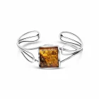 Bold, radiant and effortlessly sculptural, the Caelara Ember Bracelet is a wearable work of art. A large square cut Baltic amber stone smolders at the center of fluid sterling silver curves, mimicking flame and wind in motion. Each vein of amber tells a story, echoing earth’s ancient elegance.