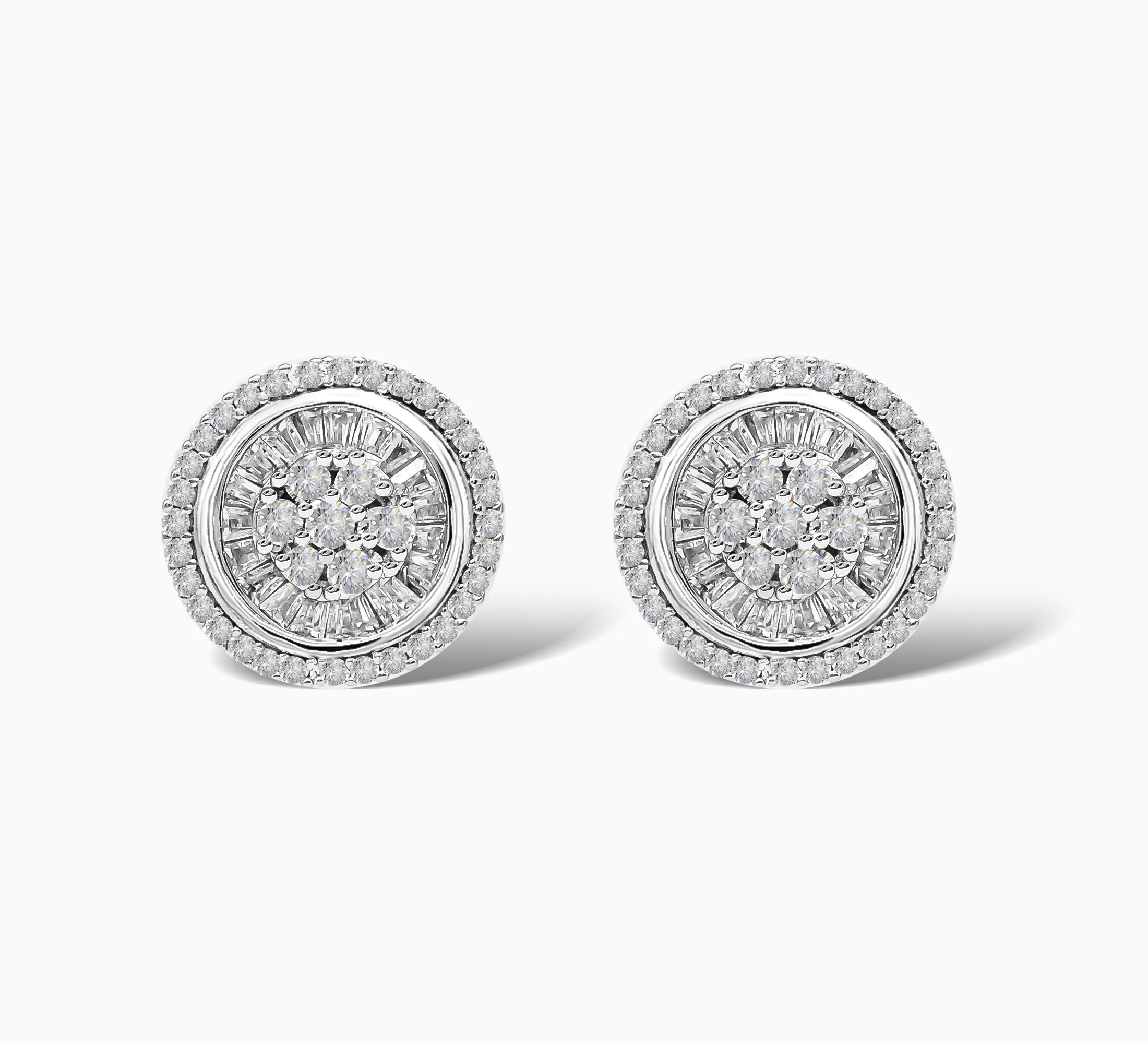 Unveil celestial charm with the Celestara Glow Stud Earrings a radiant design that captures light from every angle. These 925 Sterling Silver stud earrings feature a luminous blend of brilliant cut and baguette cut cubic zirconia, arranged in a refined halo formation.