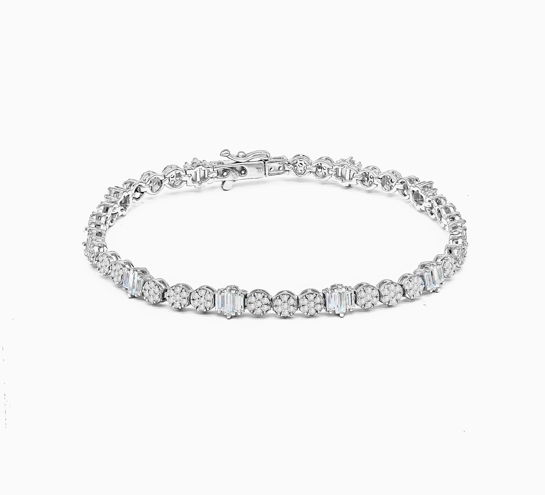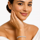Understated elegance meets captivating sparkle in the Celeste Lumiere Tennis Bracelet. Crafted in sterling silver, it features a perfect rhythm of round and baguette cut cubic zirconia, radiating brilliance from every angle. Designed for the modern woman who commands attention with grace, this timeless piece adds a polished finish to any ensemble day or night, formal or everyday luxe.