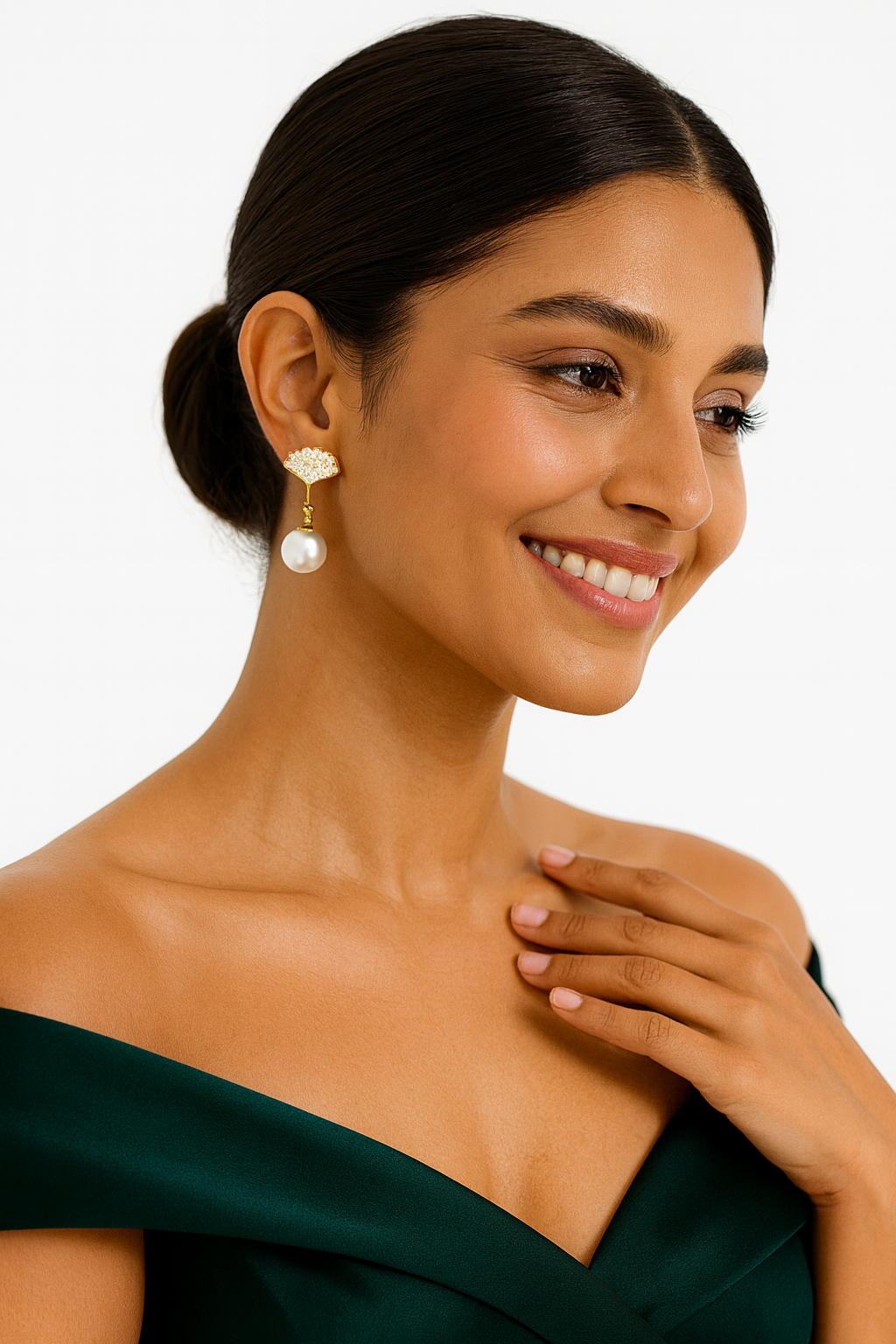 Elevate your jewellery collection with the Celestia Pearl Drop Earrings, a masterful fusion of modern luxury and timeless femininity. These earrings feature a sculpted silhouette adorned with micro pave white zirconia, cascading gracefully into High lustre imitation pearls.
