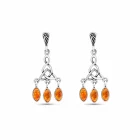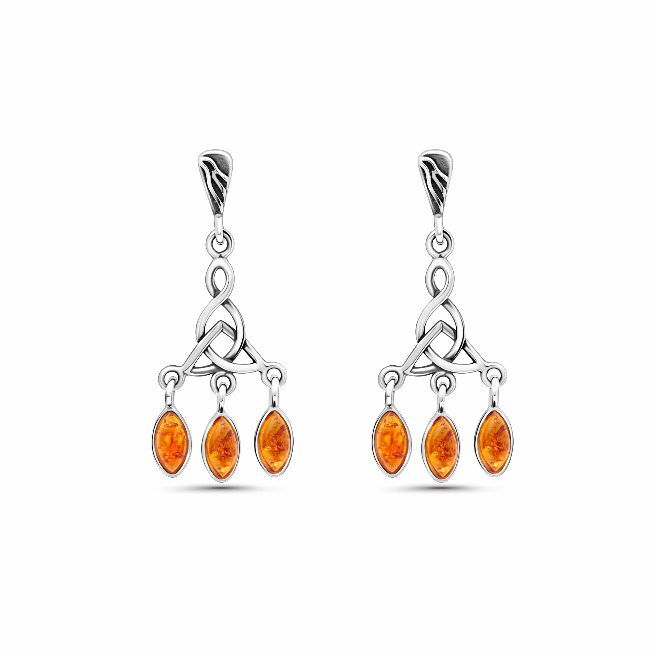 Channel ancient elegance with the Celtic Amber Earrings, where heritage meets radiant beauty. Intricate Celtic knotwork in 925 sterling silver anchors three marquise cut amber drops in a fiery honey hue. Lightweight yet bold, their balanced sway adds graceful movement and historic symbolism to your look.