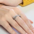 Modern grace takes form in the Ceralune Interlace Ring, where two sculptural bands unite in flowing harmony. Crafted from high polish sterling silver, one band is adorned with a full arc of pave set cubic zirconia, while the other remains elegantly bare. Together, they form an infinity like loop a contemporary symbol of connection, motion and enduring beauty.