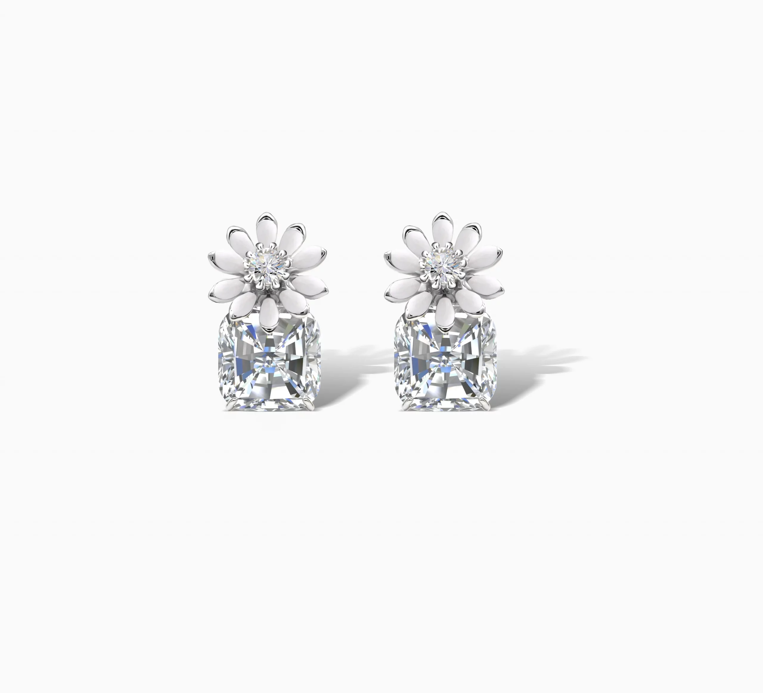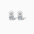 Delicate and dazzling, the Crystal Drop Stud Earrings feature elegant white enamel daisy motifs set in a lustrous 925 Sterling Silver. A brilliant cushion cut cubic zircon stone hangs beneath each flower, catching the light with every turn. These earrings blend floral elegance with contemporary sparkle, making them ideal for bridal looks, evening glam or everyday chic.