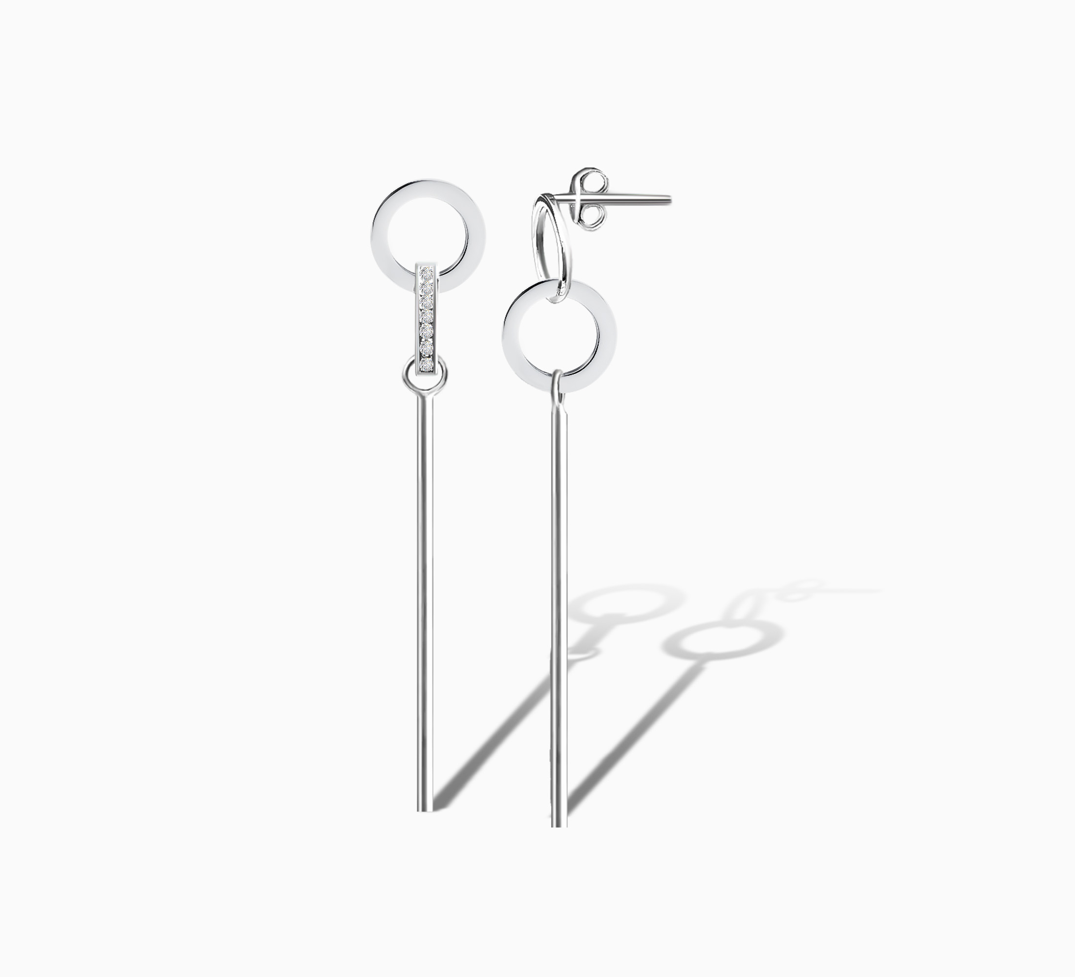 Defined by clean lines and architectural grace, the Echo Line Drop Earrings are crafted from 925 Sterling Silver with a circular top and slender bar drop. One earring is accented with a vertical row of cubic zirconia, adding a hint of asymmetric sparkle. Lightweight and contemporary, they’re the perfect blend of subtle glamour and minimalist style.