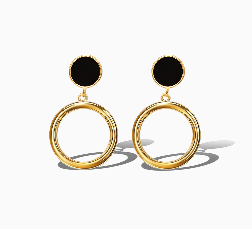 Eclipse Ember Earrings bring a refined sense of power and poise to your jewellery collection. These geometric drop earrings pair deep obsidian enamel studs with perfectly polished Gold Plating orbit Earrings, creating a striking contrast that feels both futuristic and classic.