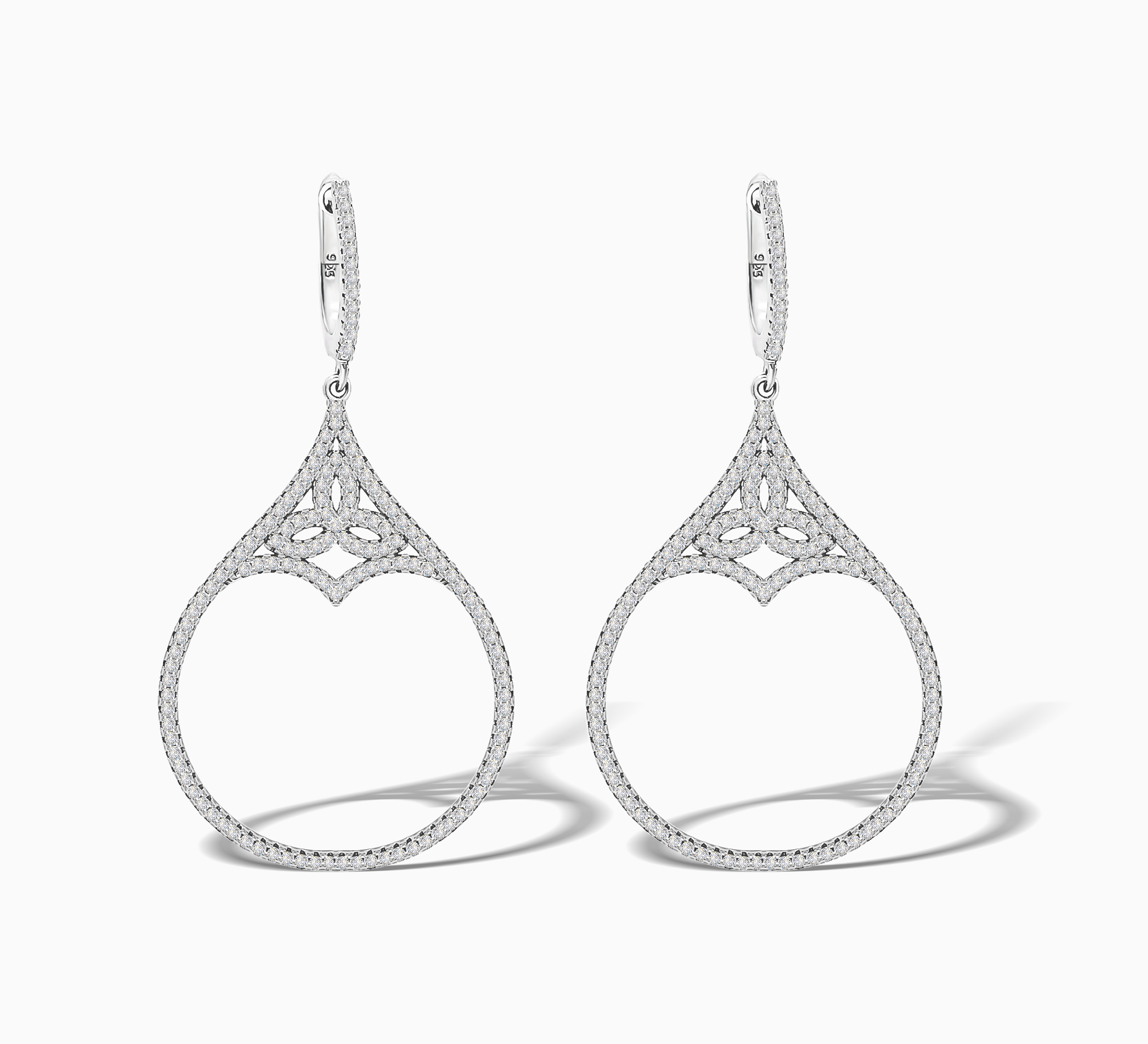 Grace your look with architectural elegance in the Elanora Teardrop Earrings, where vintage artistry meets modern glamour. These statement drop earrings feature a fluid teardrop outline, intricately adorned with micro pave cubic zirconia stones that shimmer with every movement.