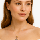 Channel regal charm with the Emerald Dusk Raindrop Pendant, where vintage artistry meets modern luxury. Set in dual tone metal with an intricate gold filigree clasp, the teardrop frame sparkles with layers of black and white crystals, crowned by a lush green emerald at its core. A show stopping piece perfect for heritage occasions or statement styling.