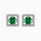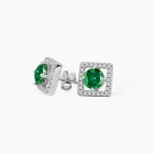 The Emerald Frame Stud Earrings blend structured elegance with rich gemstone color. At the core of this open square design sits a vibrant green round cut cubic zirconia, held within a precisely defined frame of clear round pave stones. The modern silhouette adds depth, while the pop of color brings undeniable character to the piece.