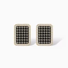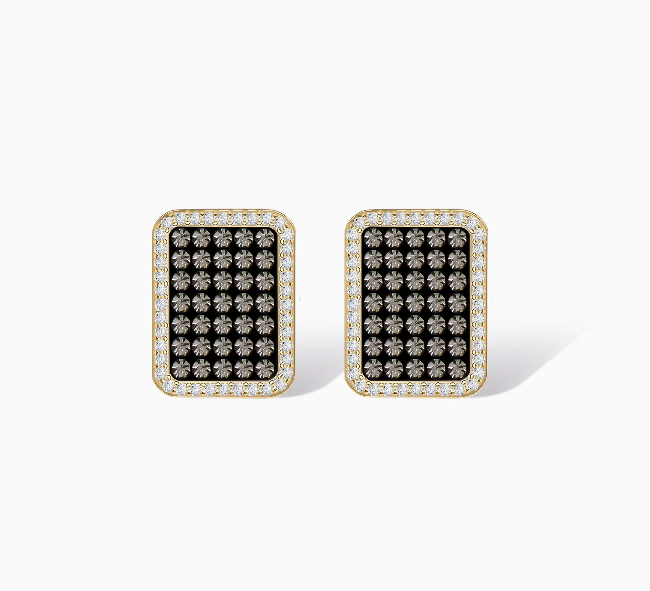 Turn heads with these vintage inspired Enamel Gold Stud Earrings. Set in a bold gold tone frame, the glossy black enamel center is adorned with a floral like pattern and surrounded by a shimmering border of pave set white crystals. The geometric design blends modern elegance with retro glam.