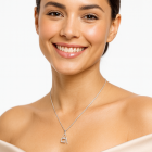 Say it’s forever with a modern love lock. The Eterna Lock & Key Pendant pairs a pave square padlock charm with a sleek key tag, crafted in luminous 925 sterling silver and set with brilliant cubic zirconia for clean sparkle. This minimalist lock pendant layers effortlessly and makes a thoughtful gift for anniversaries, birthdays or everyday wear.