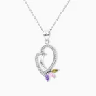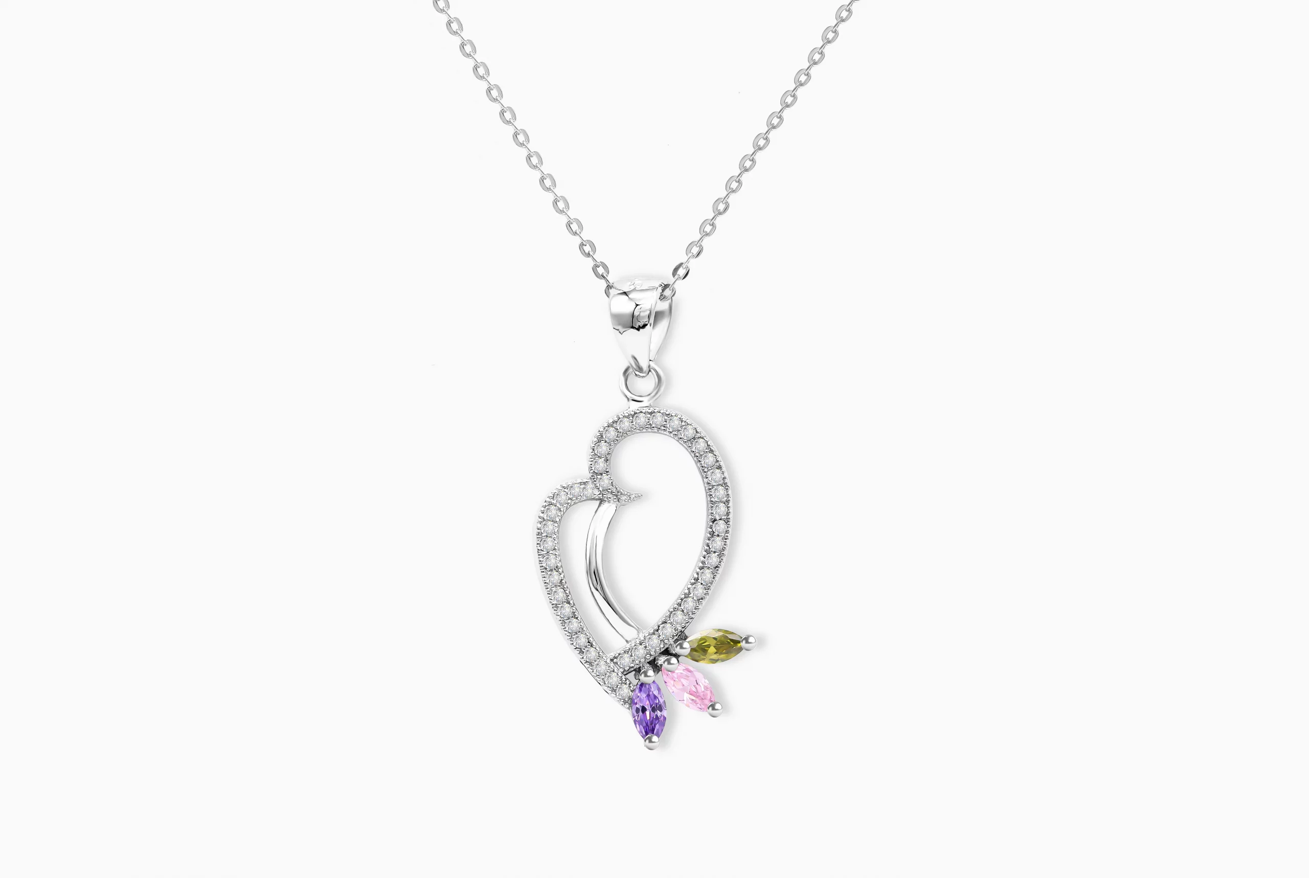 Meet the Eternal Duet Heart Pendant, a modern open heart pendant crafted in luminous 925 sterling silver. A graceful double heart silhouette is pave set with brilliant cubic zirconia, while three marquise cut petals in violet, blush pink and champagne olive add a fresh pop of color. This delicate multicolor heart pendant is perfect for everyday sparkle, layering and gift giving.