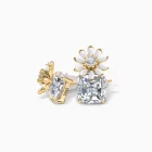 Brighten your jewellery collection with the Golden Daisy Stud Earrings, a charming fusion of floral elegance and modern brilliance. These gold plated earrings showcase delicate white enamel daisy petals centered with sparkling stones, paired with dazzling cushion cut cubic zircon drops. A floral statement thats always in bloom.