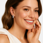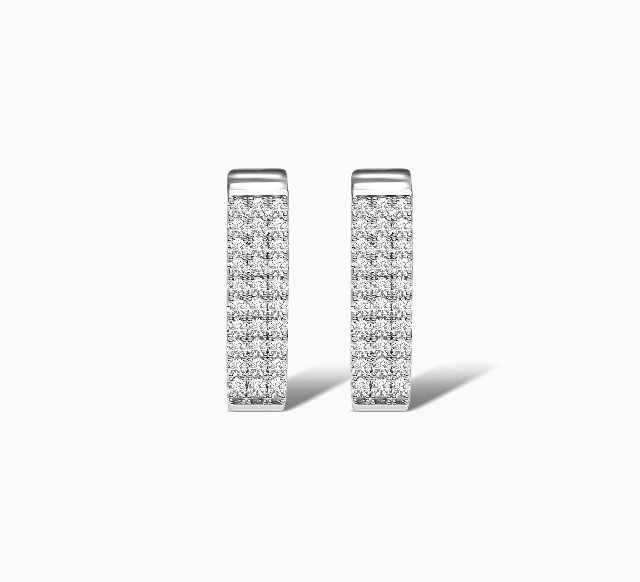 Redefine timeless sophistication with the Lucentra Hoop Earrings, where minimal design meets maximum sparkle. Expertly crafted in hallmarked 925 Sterling Silver, these hoops feature three meticulously aligned rows of pave set cubic zirconia, offering a bold yet refined shimmer from every angle.