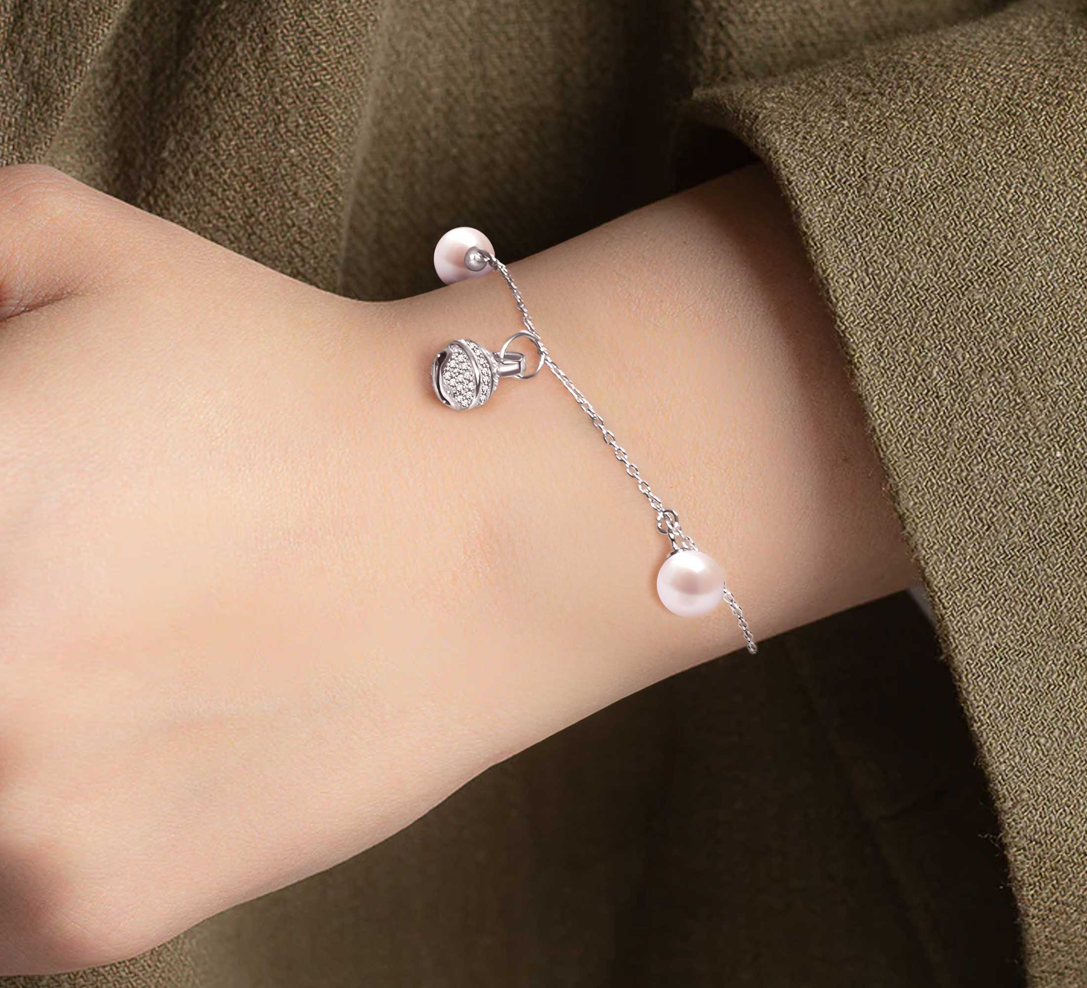 The Lumiere Pearl Charm Bracelet captures grace in every detail. Crafted in sterling silver, it features luminous freshwater pearls and a pave set charm that glimmers with understated brilliance. Light, fluid and effortlessly elegant, this bracelet adds a poetic touch to everyday looks or special occasions.