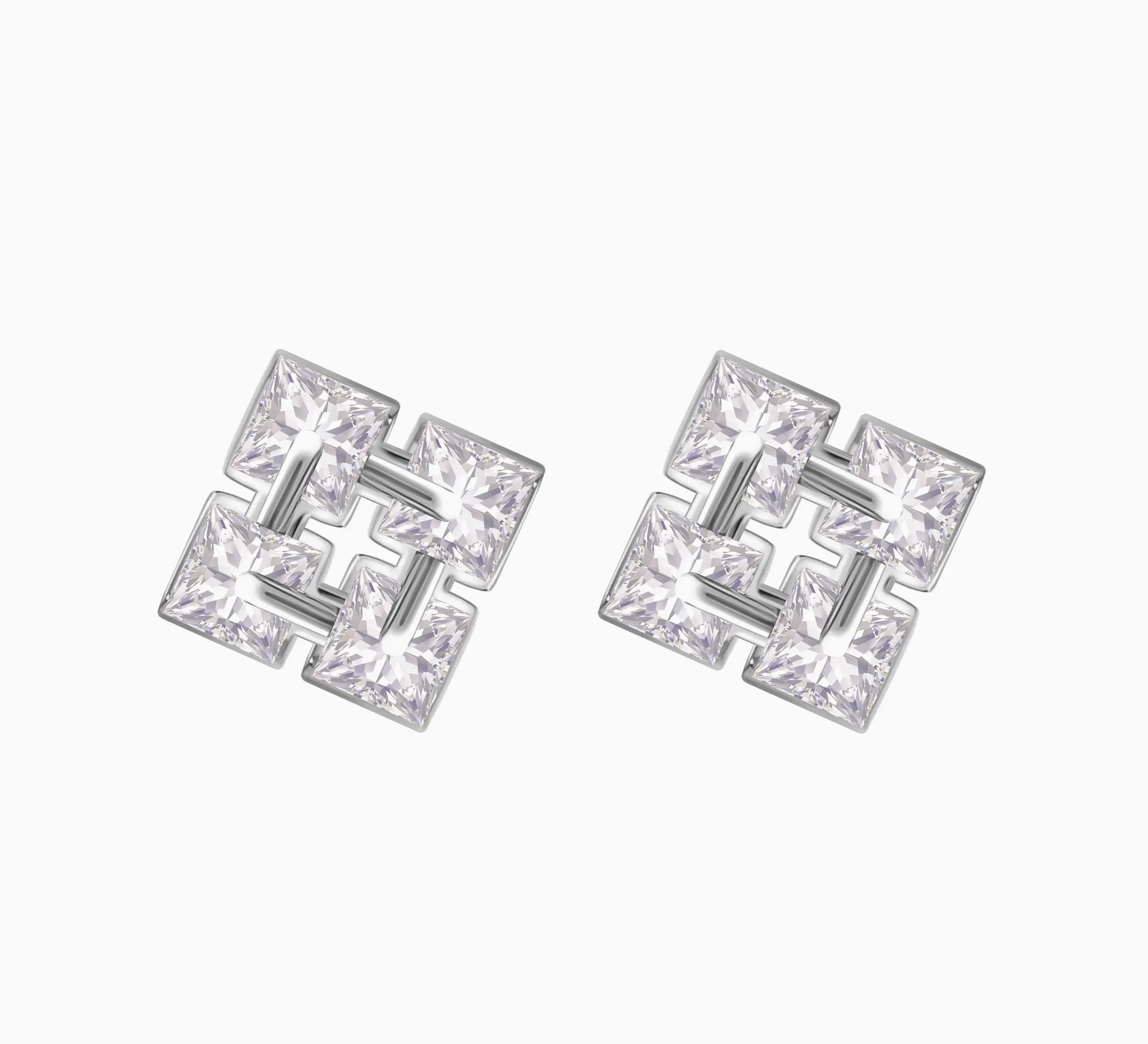 Step into the spotlight with the Luminous Links Stud Earrings, a striking design that blends symmetry and sparkle. Crafted from high polish 925 Sterling Silver, these earrings feature four perfectly cut princess shaped clear cubic zirconia stones, set in a geometric lattice that feels both modern and timeless.