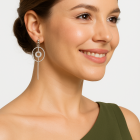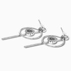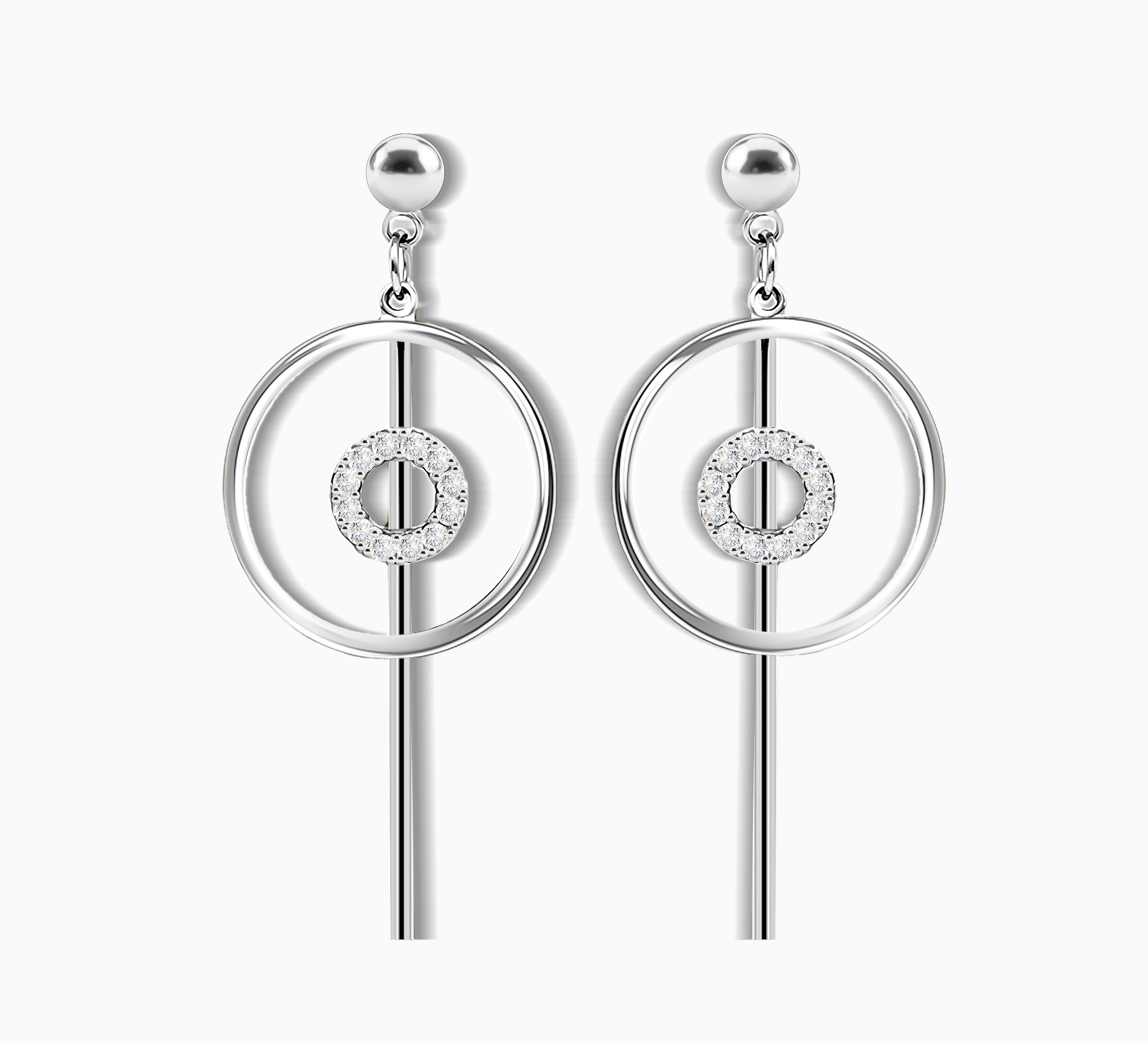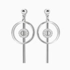 The Lunaris Linea Drops embody a cosmic fusion of geometry and grace. Crafted with a 925 Sterling Silver finish, these modern statement earrings feature a sleek vertical line intersecting a double circle design, a bold outer ring and a delicate pave crystal inner halo.