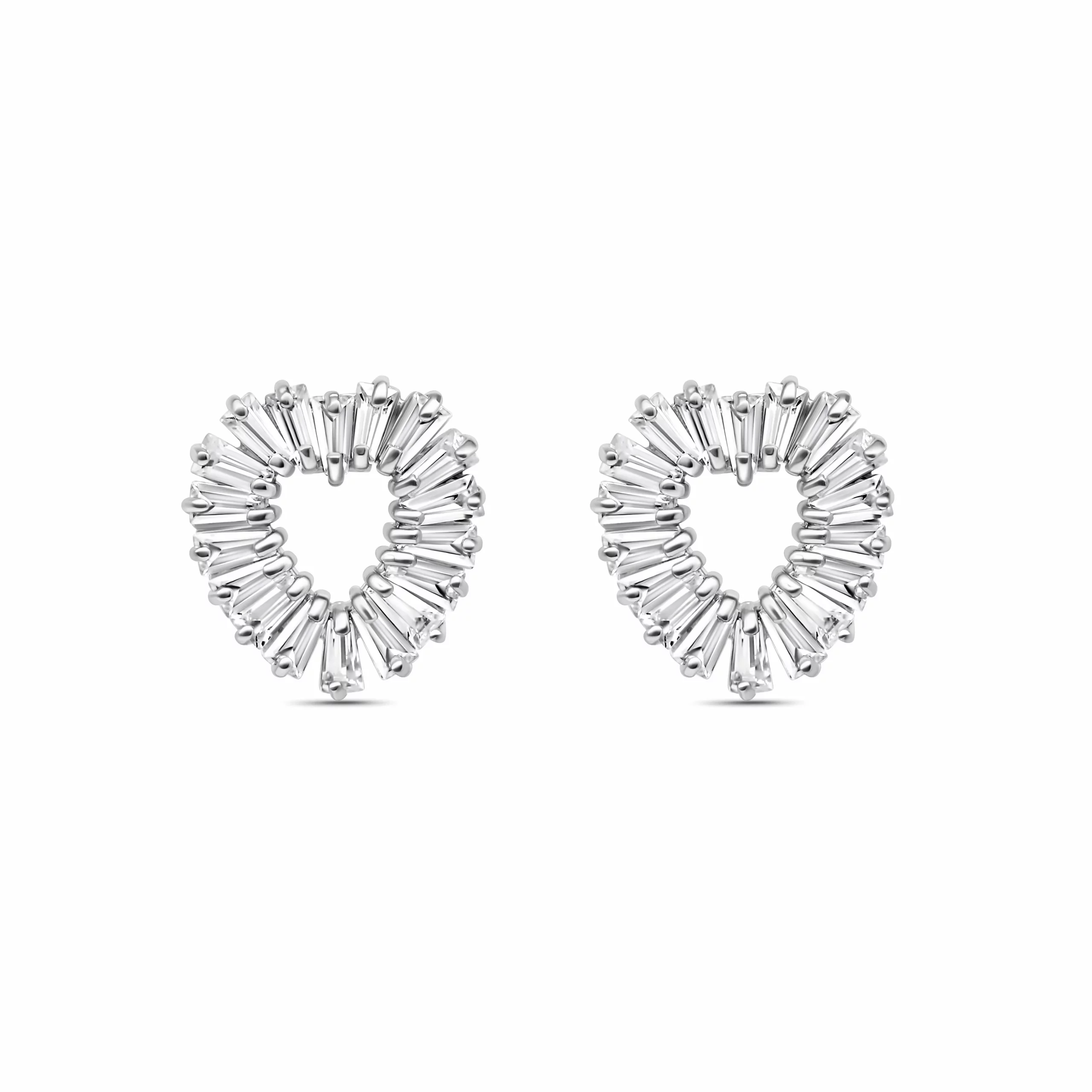 The Lyxora Prism Hearts radiate bold elegance with a sculptural twist. Designed in 925 sterling silver, these heart shaped studs feature a burst of baguette cut cubic zirconia, reflecting light with every move. A modern symbol of love and individuality, they balance romance and edge with ease.