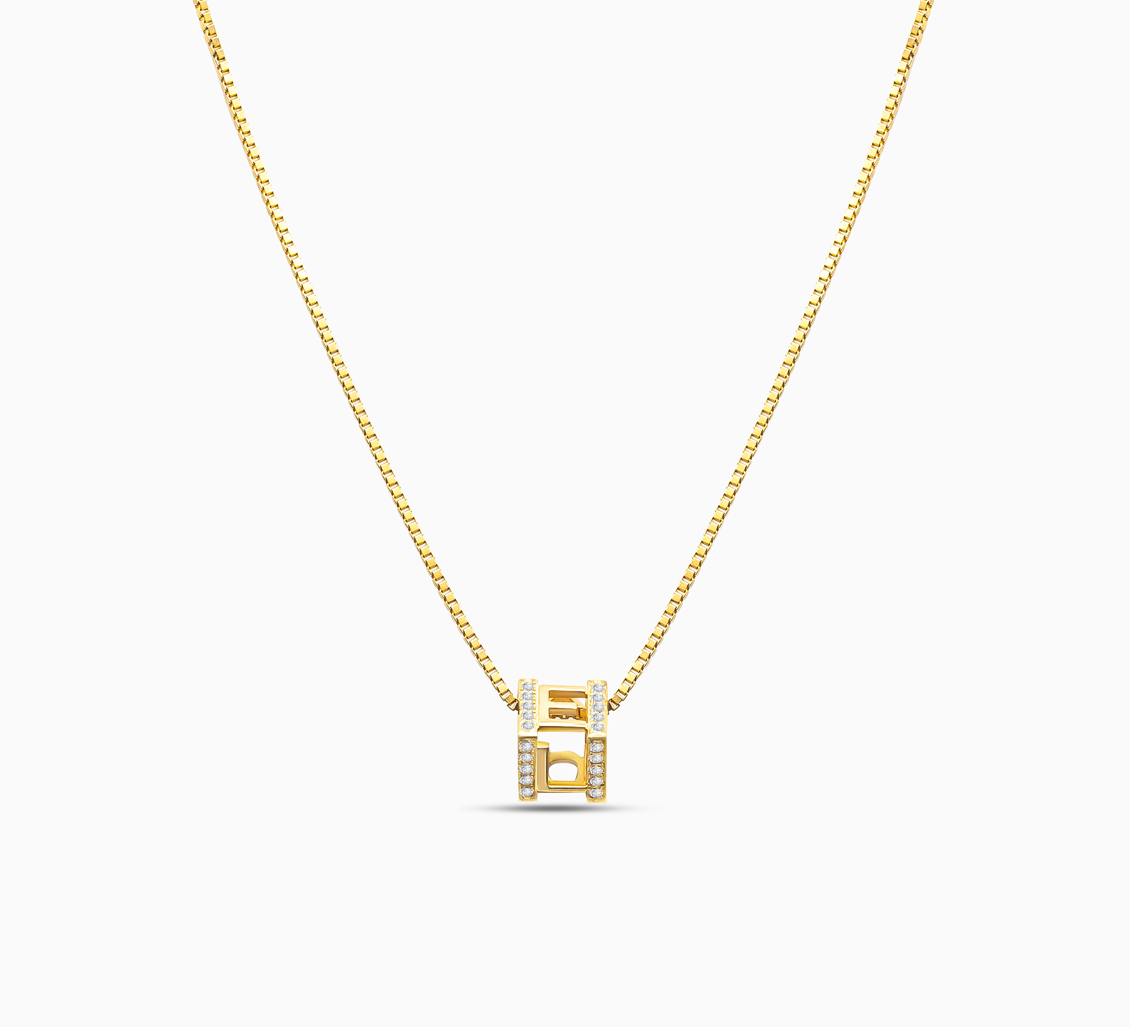 Architectural lines meet everyday shine in the Metro Glow Pendant. A sculptural open work barrel glides freely along a sleek box chain, while twin columns of hand set pave cubic zirconia deliver head turning sparkle from every angle. Crafted in 18K gold plated 925 sterling silver for rich colour, durability and hypoallergenic wear.