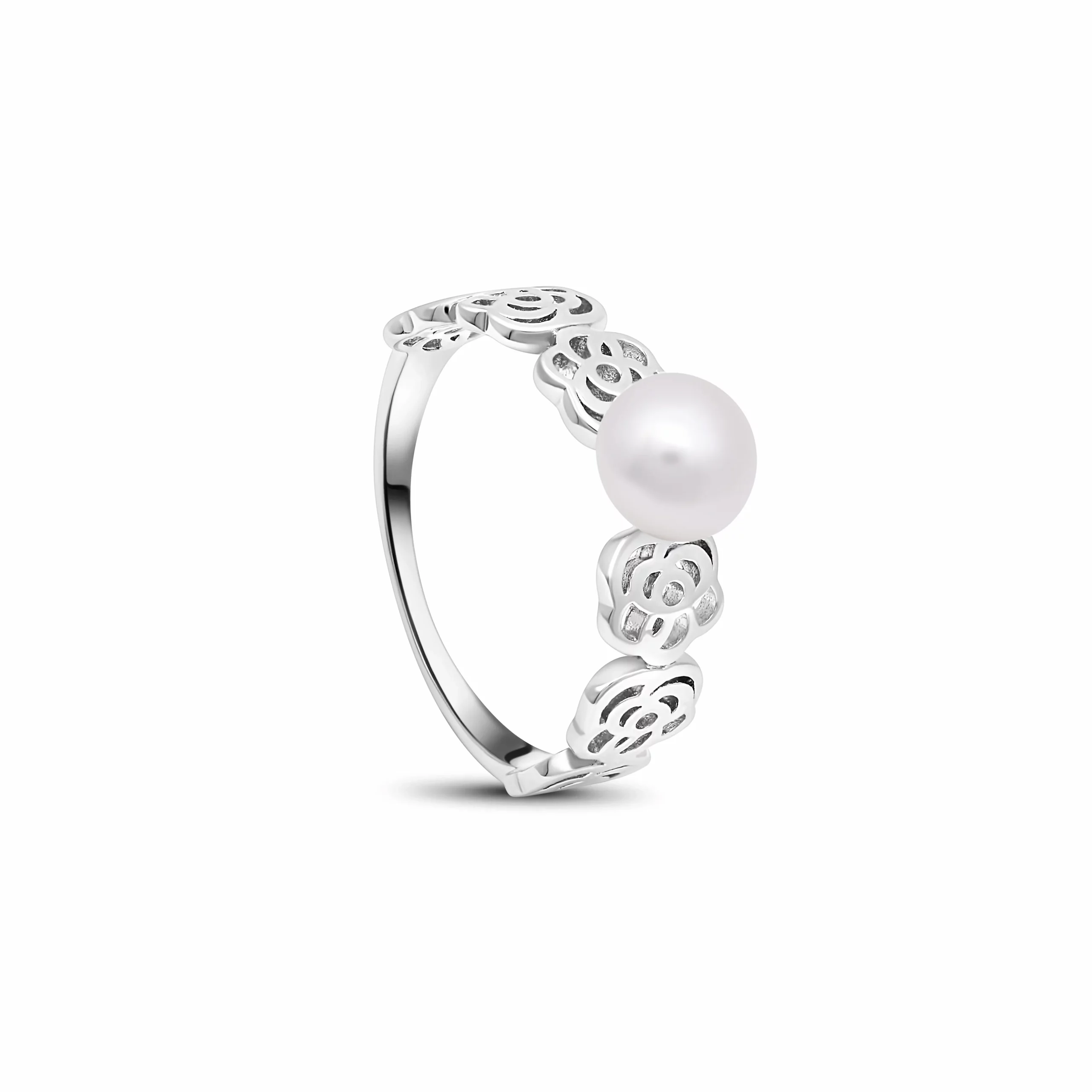 Inspired by the softness of petal and pearl, the Miravelle Ring brings delicate artistry to life. Its slender sterling silver band is detailed with lace like rose filigree, gently cradling a radiant white imitation pearl. Graceful and light reflective, this design blends classic romance with modern minimalism, perfect for gifting, stacking or wearing as a daily ode to beauty.