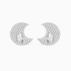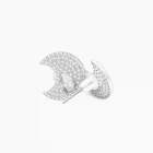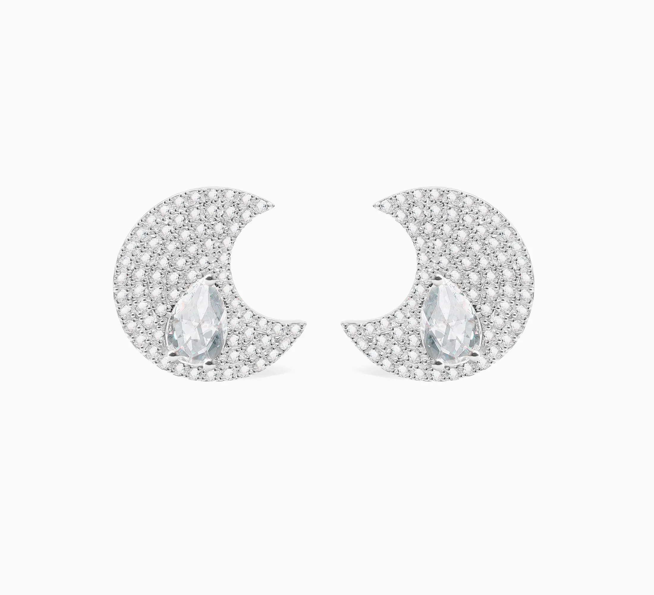 Drift into celestial wonder with the Moonveil Frost Stud Earrings. Designed in cool toned 925 Sterling Silver, this pair captures the hypnotic glow of a moonlit evening. Each stud earring features a sweeping crescent shape, encrusted with a blanket of micro pave cubic zirconia and anchored by a striking pear cut cubic zirconia stone a frozen teardrop glimmering with quiet strength.