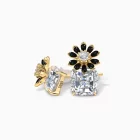 Elegant yet playful, the Noir Daisy Stud Earrings showcase glossy black enamel petals arranged in a chic daisy motif, resting above dazzling cushion cut cubic zircon stones. Crafted with a luxurious gold plated finish, these earrings exude sophistication with a touch of botanical flair. Perfect for elevating both everyday outfits and evening ensembles.