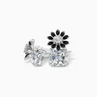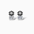 Embrace striking contrast and refined charm with the Noir Spark Stud Earrings. These silver plated floral stud earrings feature glossy black enamel petals surrounding a shimmering center stone, elegantly paired with cushion cut cubic zircon drop accents. Perfect for evening glamour or elevating everyday elegance.