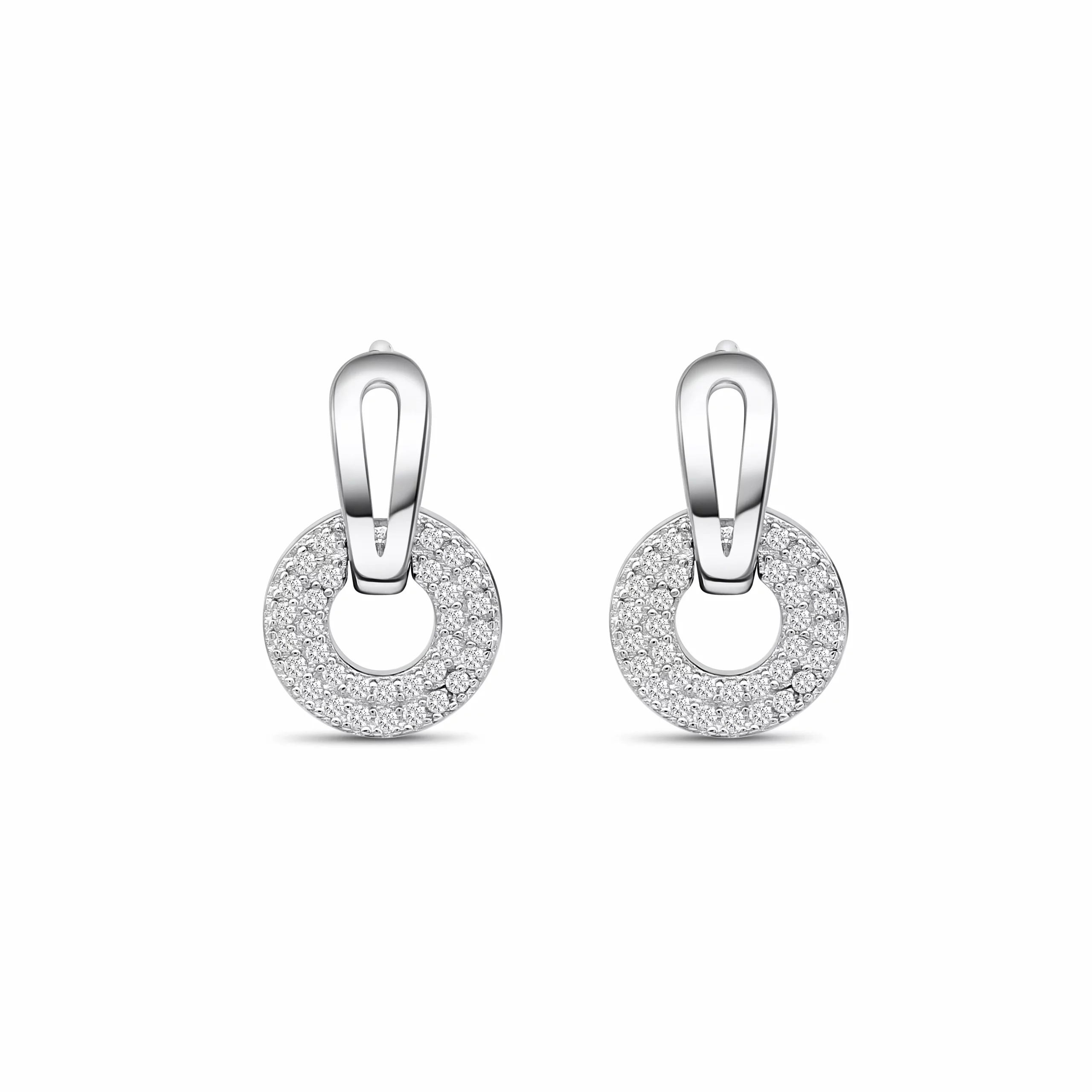 Sleek, sculptural, and endlessly versatile, the Orynza Loop Lights are a modern ode to minimal luxury. Crafted in high polish 925 sterling silver, each earring features a perfect pave set circle suspended from a refined, contemporary drop. Effortlessly chic and lightweight, they bring refined sparkle to everyday dressing or evening elegance.