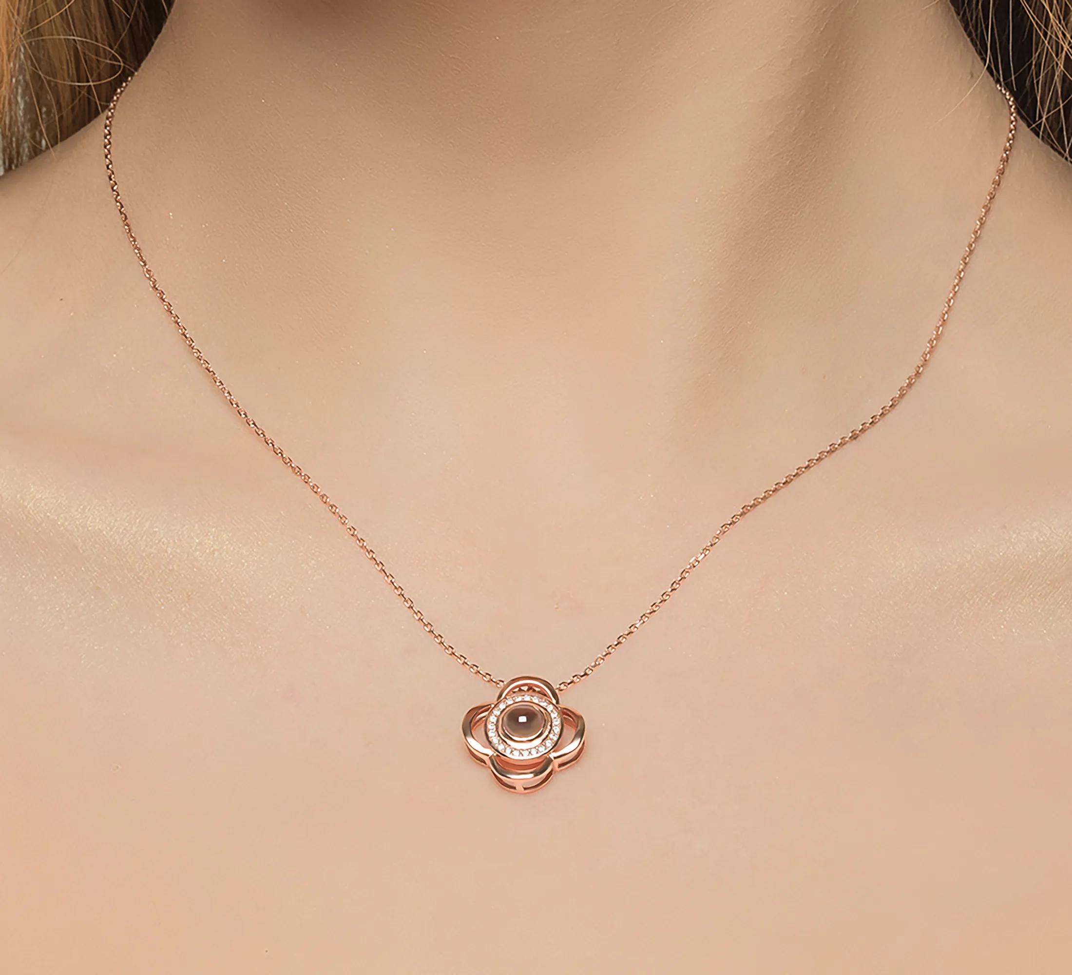 A modern floral you can wear every day. The Peony Glow Pendant features a sleek five petal silhouette in 18K rose gold plated 925 sterling silver, centered by a smooth mirror finish dome and a delicate cubic zirconia micro halo for subtle sparkle. It layers beautifully or shines solo, an elegant choice.