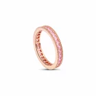 Chic and romantic, the Rosavelle Eternity Band Ring is crafted from premium sterling silver and finished in radiant rose gold. Its sleek profile is adorned with a continuous row of pink princess cut cubic zirconia, offering a perfect balance of softness and sparkle. Ideal for stacking, gifting or wearing solo as a statement of modern love and enduring style.
