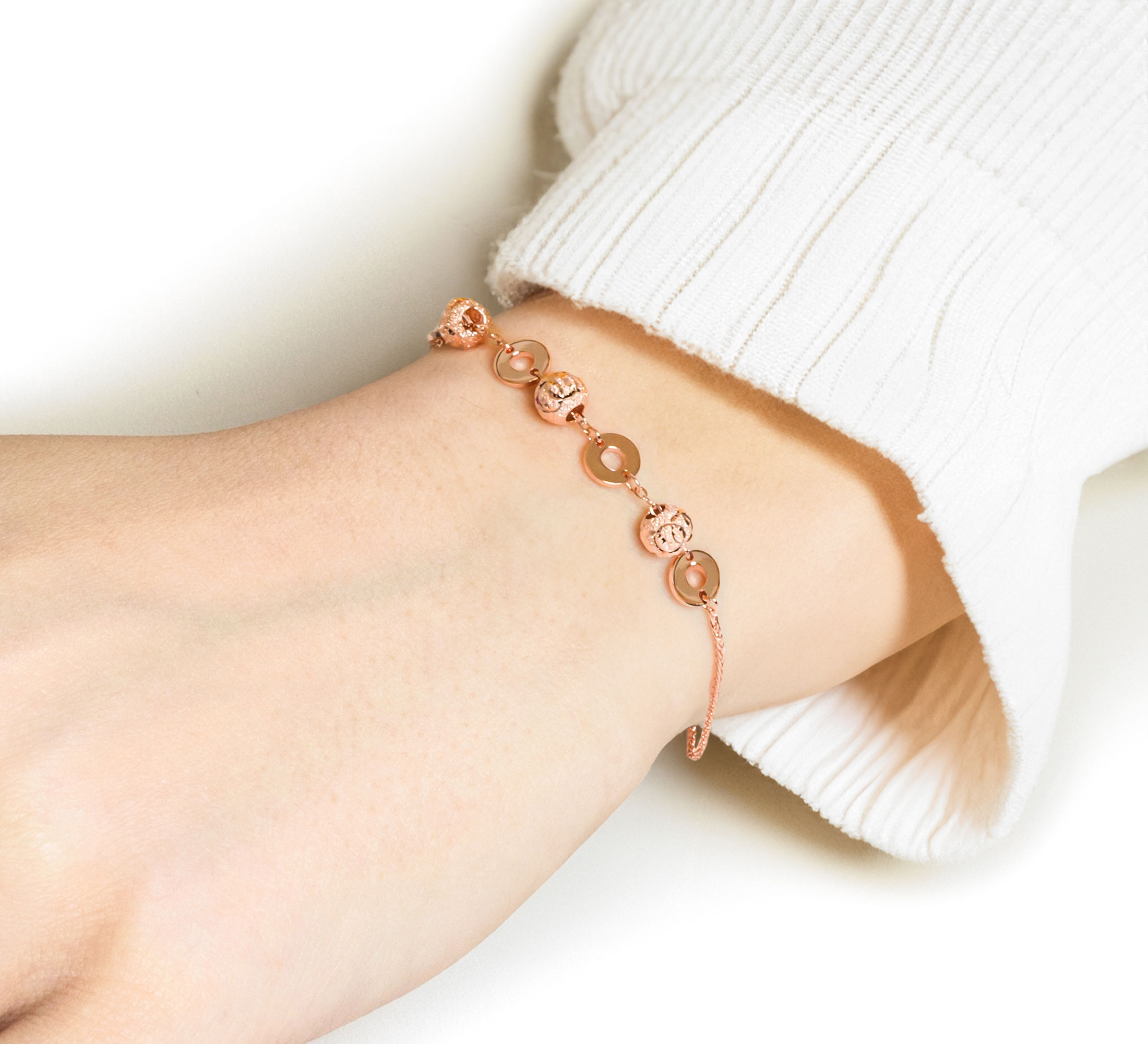 The Rose Orbit Link Bracelet brings modern charm to your jewellery collection. Featuring a striking pattern of open circular links and textured bead elements, this bracelet adds dimension and brilliance to any look. The warm rose gold finish enhances its feminine appeal, while the adjustable chain ensures a comfortable and secure fit. Ideal for solo wear or stylish stacking.