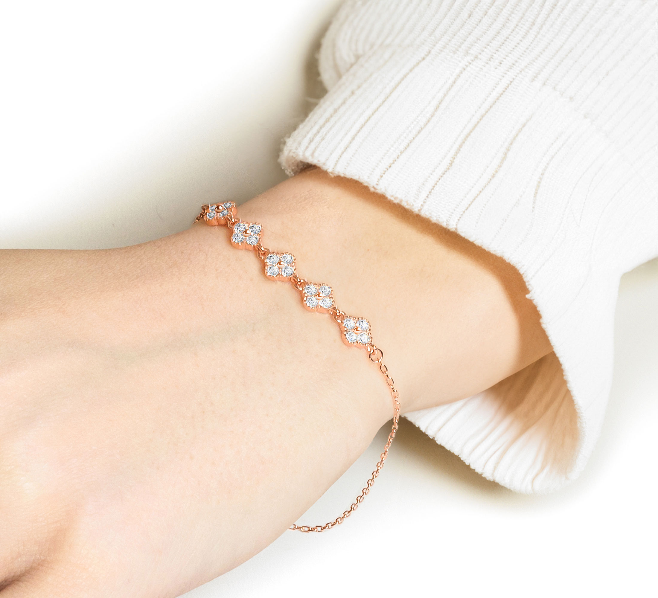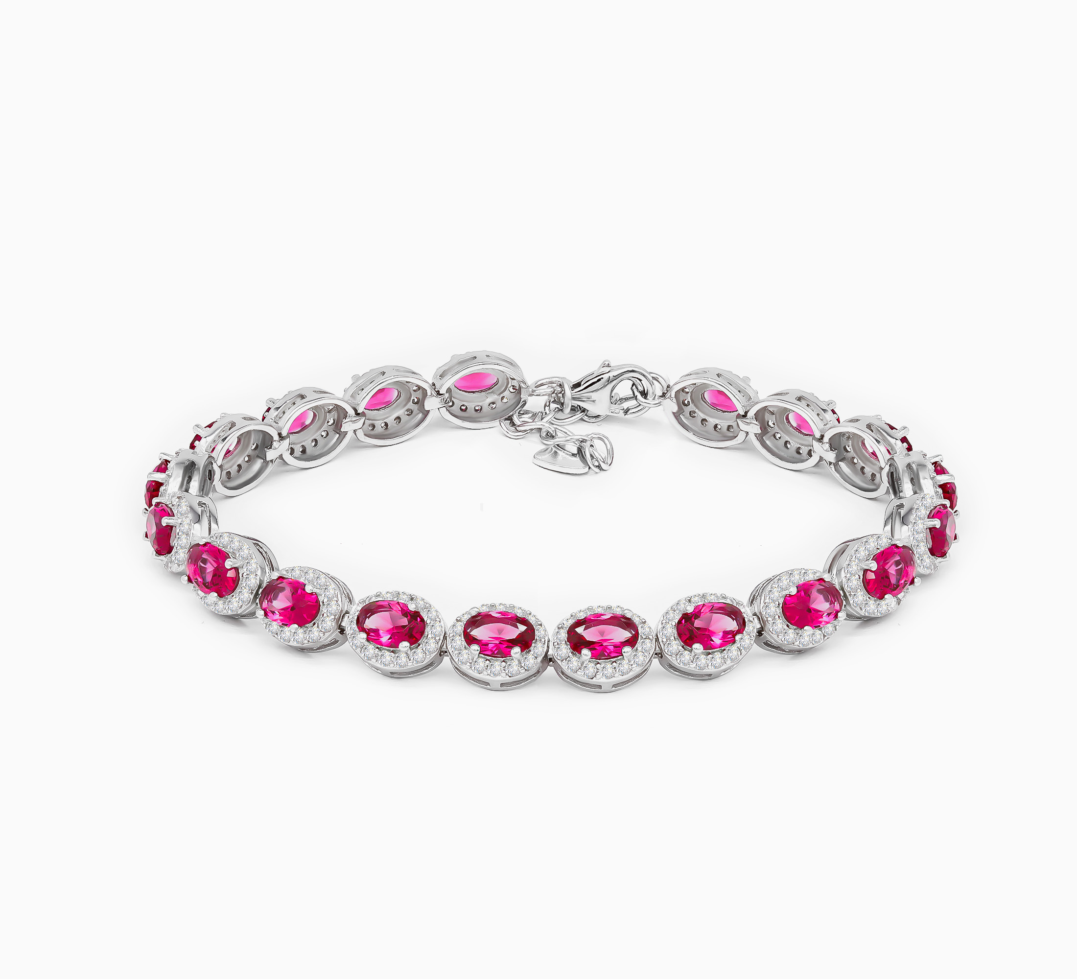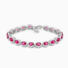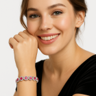 The Rose Royale Bracelet is a celebration of elegance and femininity. Oval cut pink cubic zirconia shimmer at the heart of pave set halos, all set in luminous sterling silver. Each link flows seamlessly, offering a graceful balance of colour, clarity and classic design. Ideal for romantic evenings or refined daywear, this piece is made for women who carry timeless beauty with effortless poise.