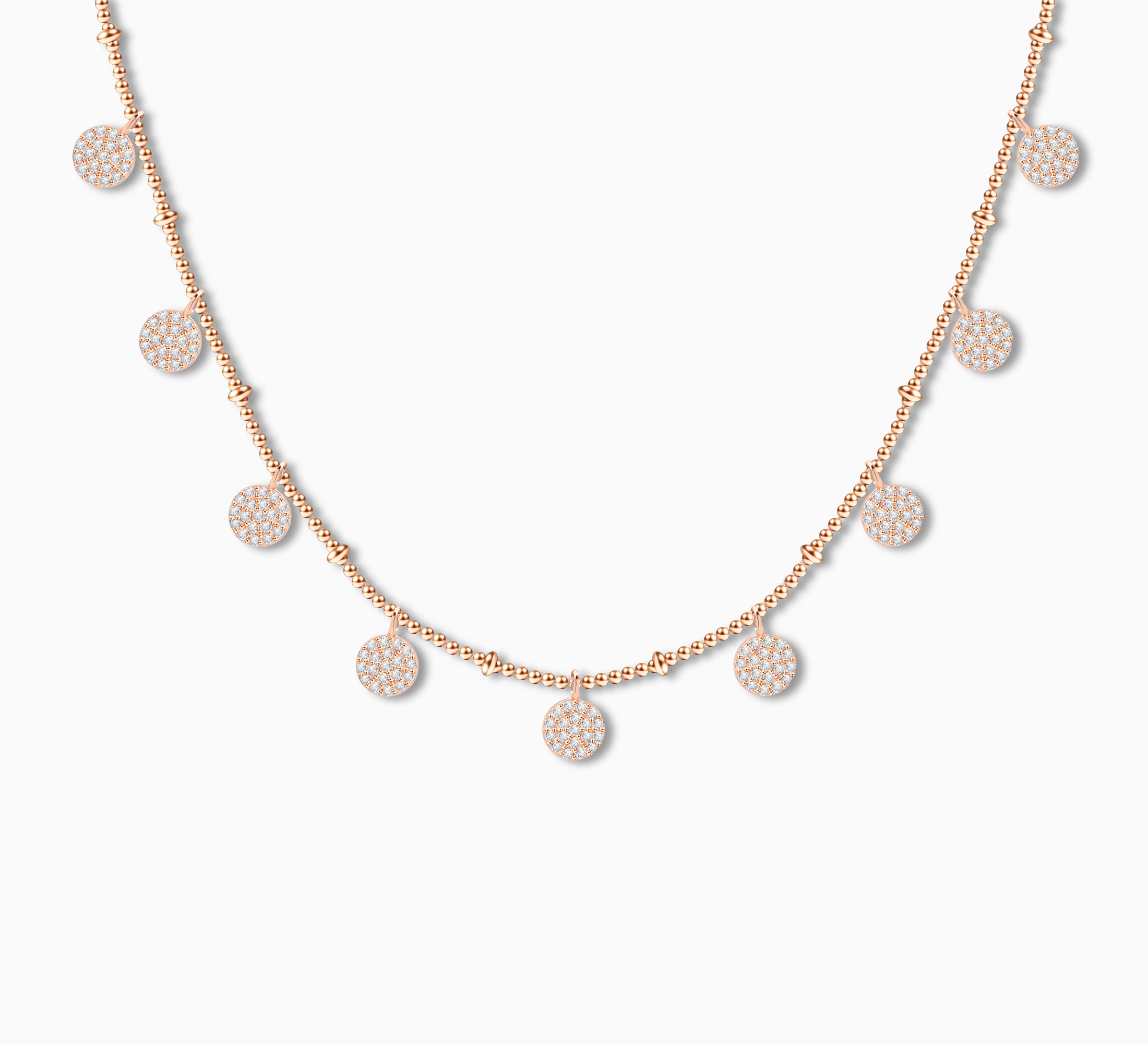 The Rose Solina Necklace brings a warm, contemporary edge to timeless elegance. Featuring shimmering pave set discs suspended on a delicate rose gold bead chain, it offers a refined sparkle that catches the eye. Lightweight and adjustable, it’s perfect for solo wear or layering with your favourite pieces. Whether day or night, this necklace adds a soft, luxurious glow to every neckline.