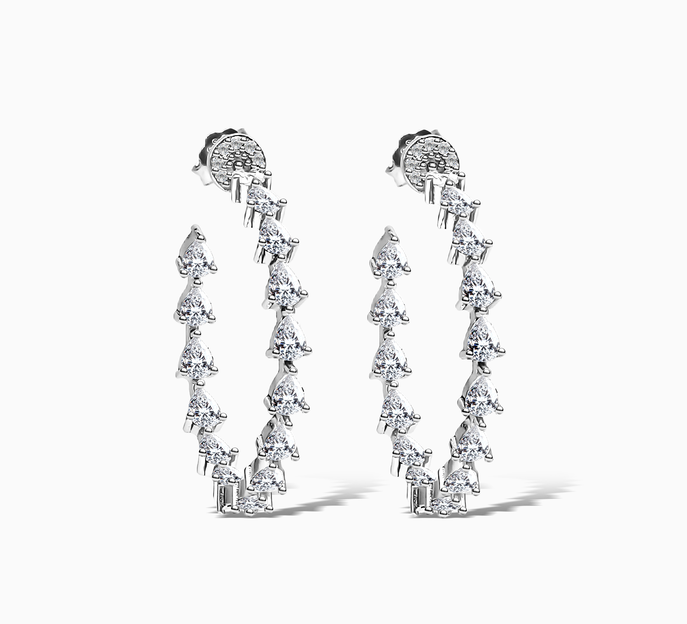Embody timeless glamour with the Seraphina Earrings, a contemporary expression of refined elegance. Crafted with a series of precision cut trilliant stones that form a gentle, arching curve, these earrings captivate with their symmetrical sparkle and luxurious design.
