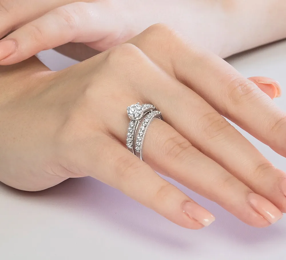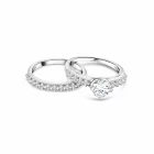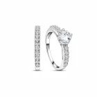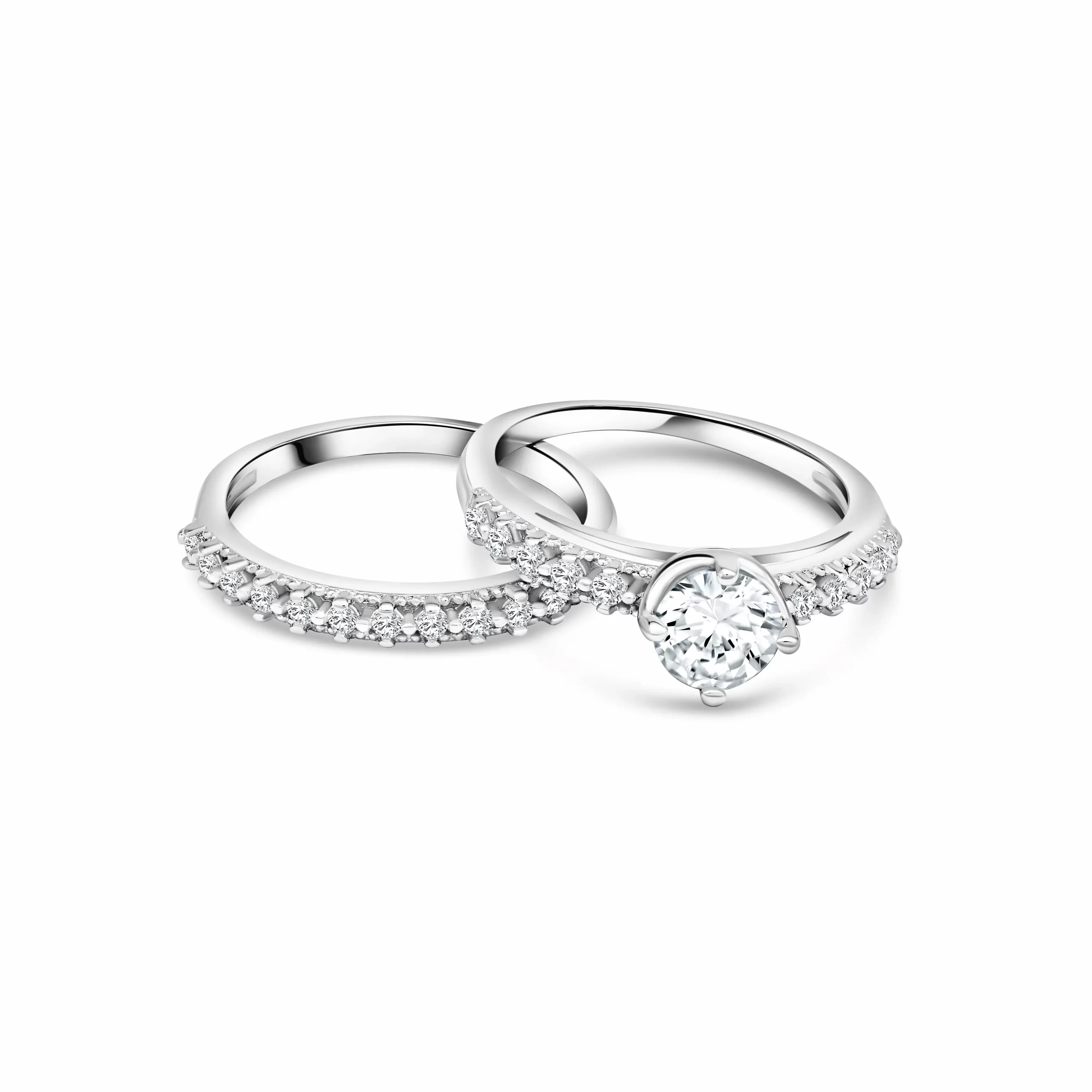 The Serenade Set Ring is an ode to everlasting love and sophisticated beauty. Crafted in hallmarked 925 sterling silver, this stunning duo features a brilliant round cut cubic zirconia solitaire ring with pave set accents, perfectly complemented by a matching eternity style band. Each stone is meticulously set for maximum sparkle and timeless appeal.