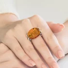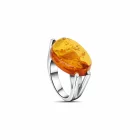 Harness the glow of ancient sunlight with the Solar Relic Ring, a bold fusion of organic wonder and modern design. At its core, an oversized oval cut amber gemstone captures golden fire and flecks of fossilized mystery, set in a sleek, minimalist sterling silver claw. Its open shoulder setting offers a museum worthy profile.
