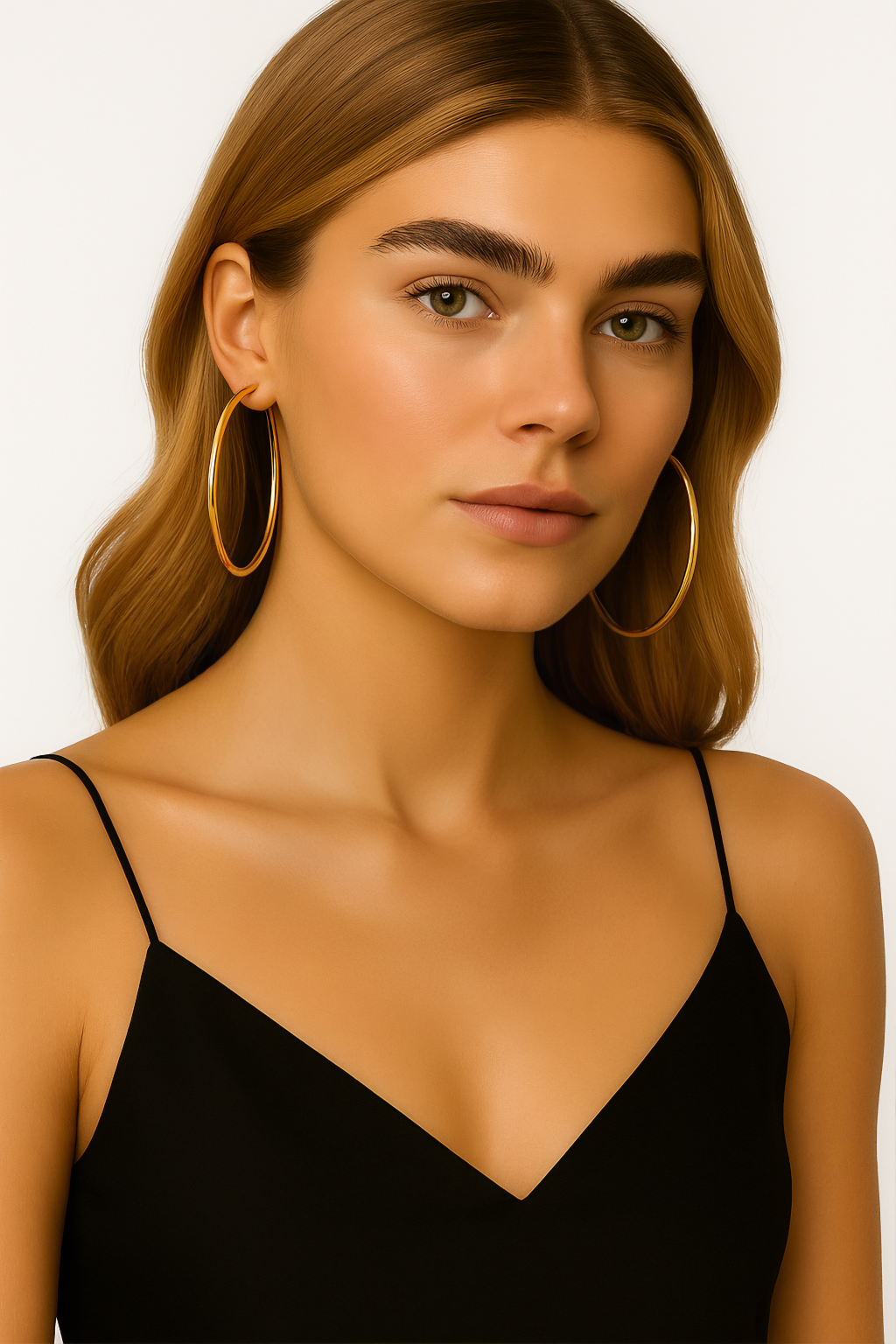 Refined and radiant, the Solara Luxe Hoop Earrings are your ultimate go to for minimalist sophistication. These whisper light hoops are crafted from Gold Plating 925 Sterling Silver, offering a gleaming finish and timeless silhouette that never goes out of style.
