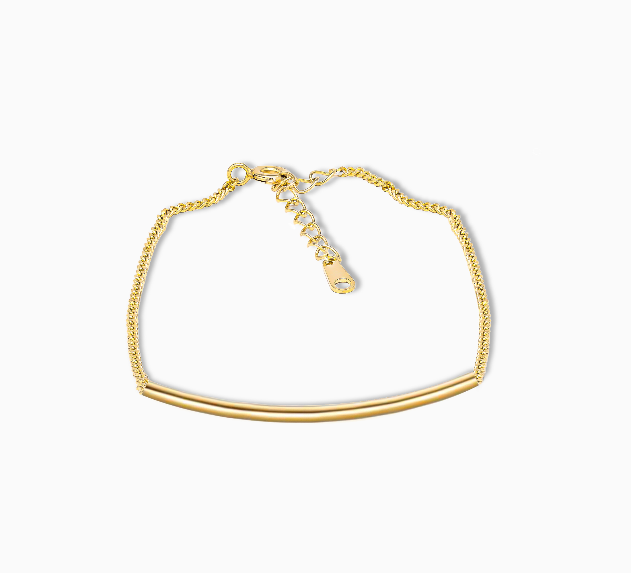 Effortlessly refined, the Solene Bar Bracelet is a celebration of minimalist beauty. Crafted from sterling silver and luxuriously plated in gold, it features a gently arched bar on a fine chain, offering fluid movement and modern polish. Ideal for layering or solo sophistication, this piece brings quiet confidence to every look, timeless, versatile and always in style.