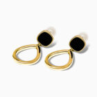 Dare to define your style with the Solstice Drop Earrings, where elegance meets edge in the most refined way. These captivating earrings feature a smooth black enamel stud paired with an open teardrop silhouette in rich, gold plated sterling silver. Sculpted with clean curves and modern proportions, the earrings are lightweight yet impactful, offering movement, shine and a perfect pop of high-contrast drama.
