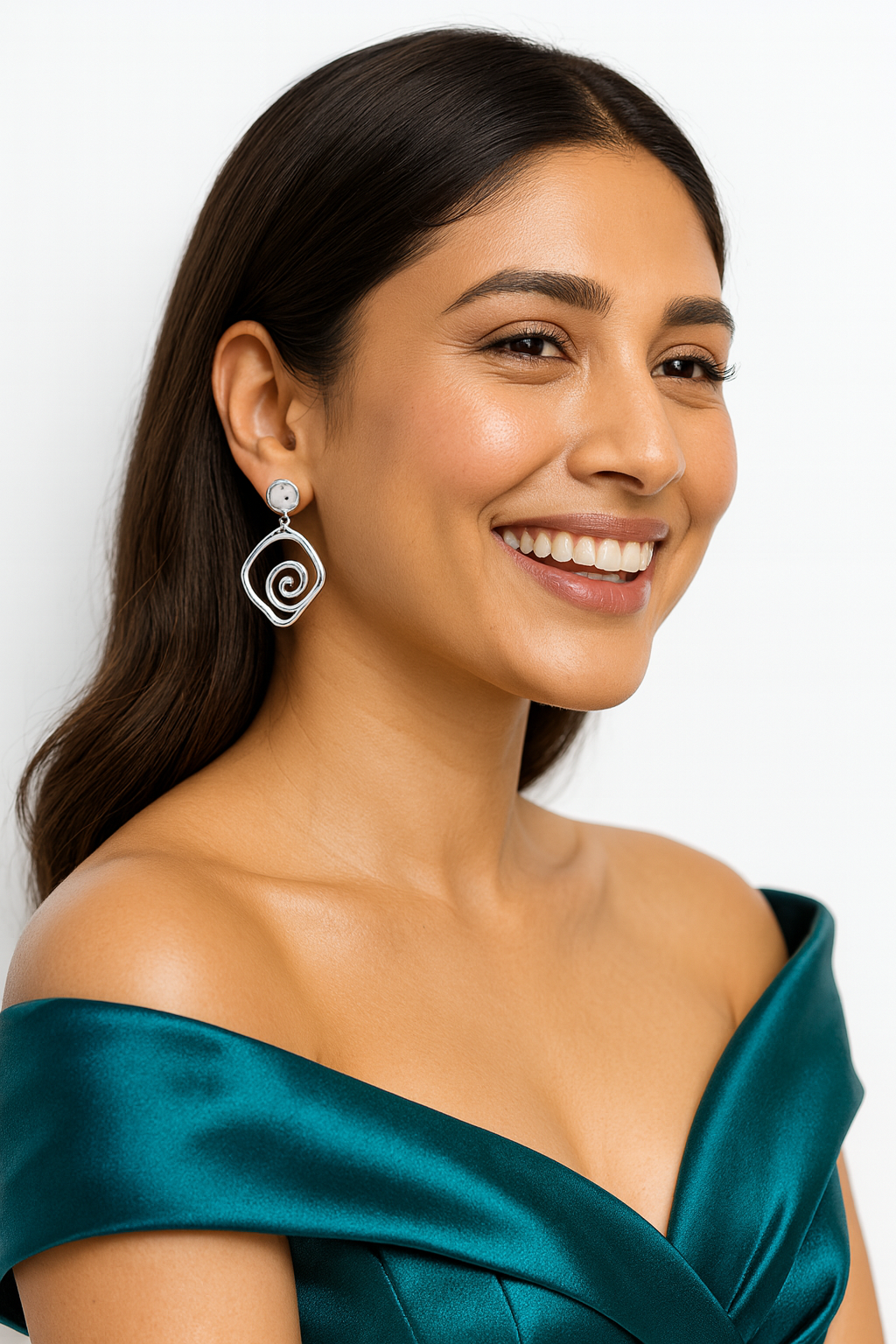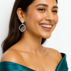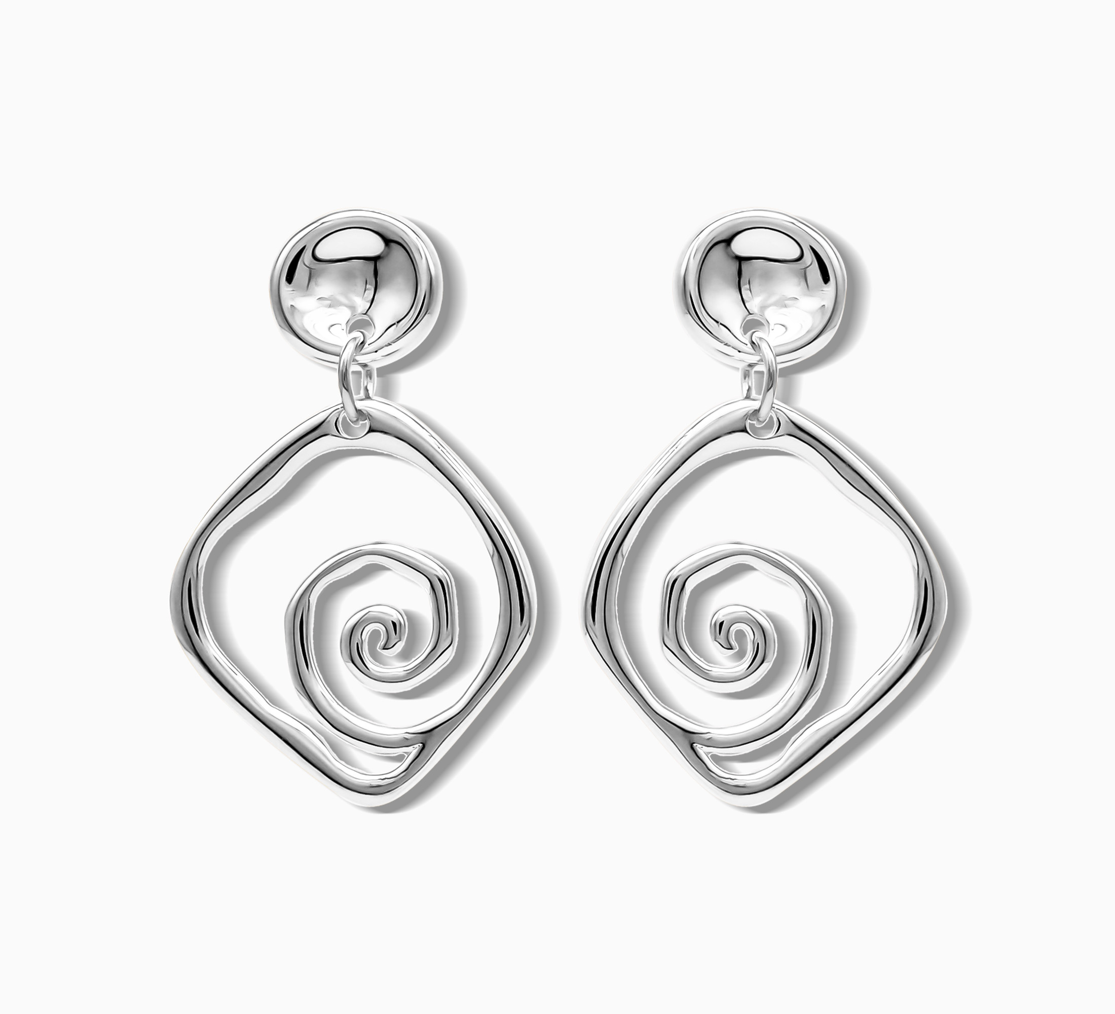 Elevate your accessory game with the Spiral Flux Earrings, a pair of modern silver abstract earrings crafted to embody fluidity, movement and cosmic balance. With a hypnotic spiral design cradled in a soft diamond outline, these statement drop earrings blend minimalist sculpture with bold femininity.