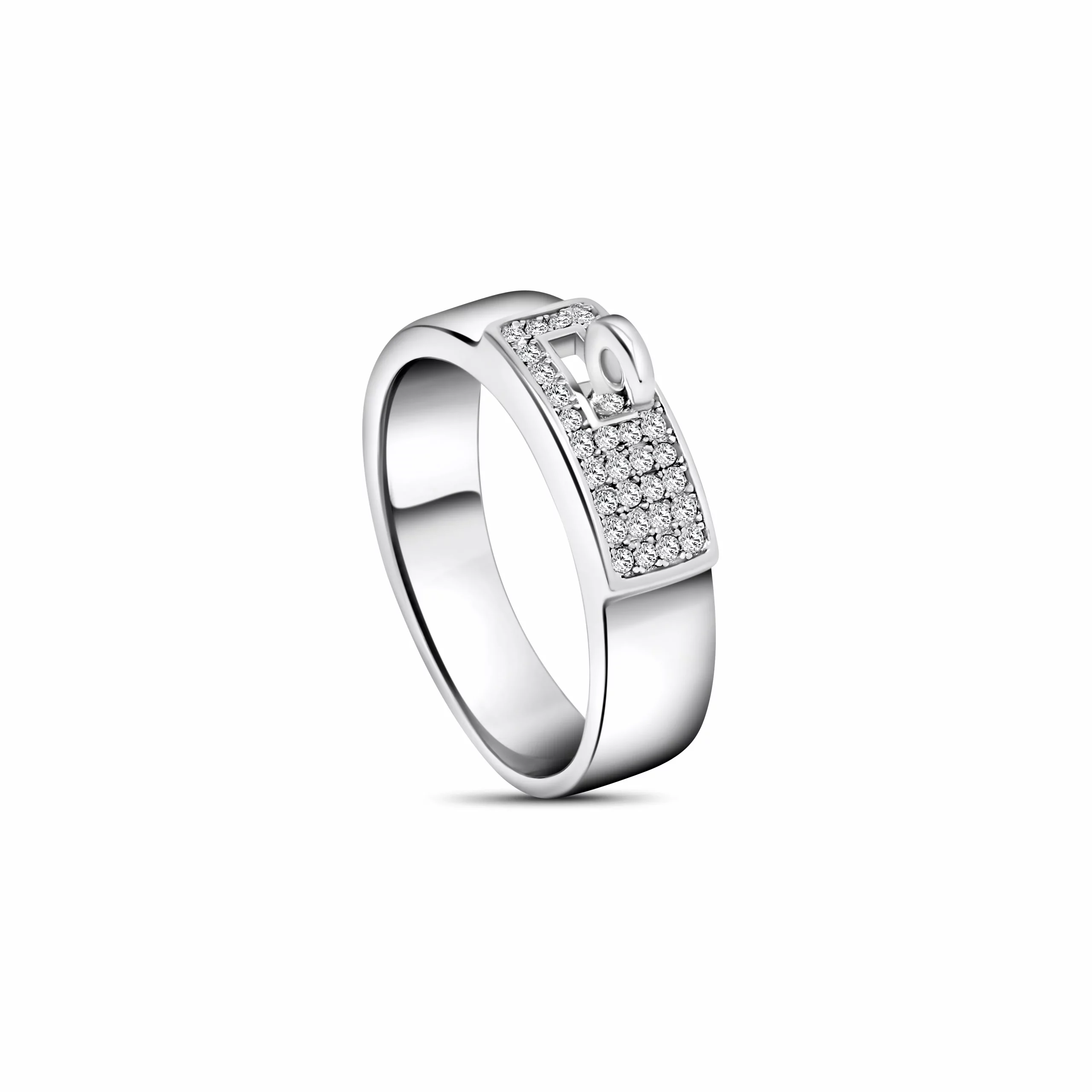 The Sterline Buckle Band Ring is a bold, contemporary twist on a classic motif. Crafted in hallmarked 925 sterling silver, this sleek design features a sculpted buckle detail accented by a fully pave set panel of brilliant cubic zirconia for eye catching sparkle. Symbolising strength, connection and modern luxury, it’s perfect for daily wear or statement gifting.