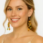 Add a burst of sunshine to your look with our Sunburst Dangle Earrings. These playful 925 sterling silver earrings feature hand-strung amber hued beads, fiery red accents, and citrus pops of green. Inspired by antique charm with a modern twist, each pair brings light, movement and personality to your style.