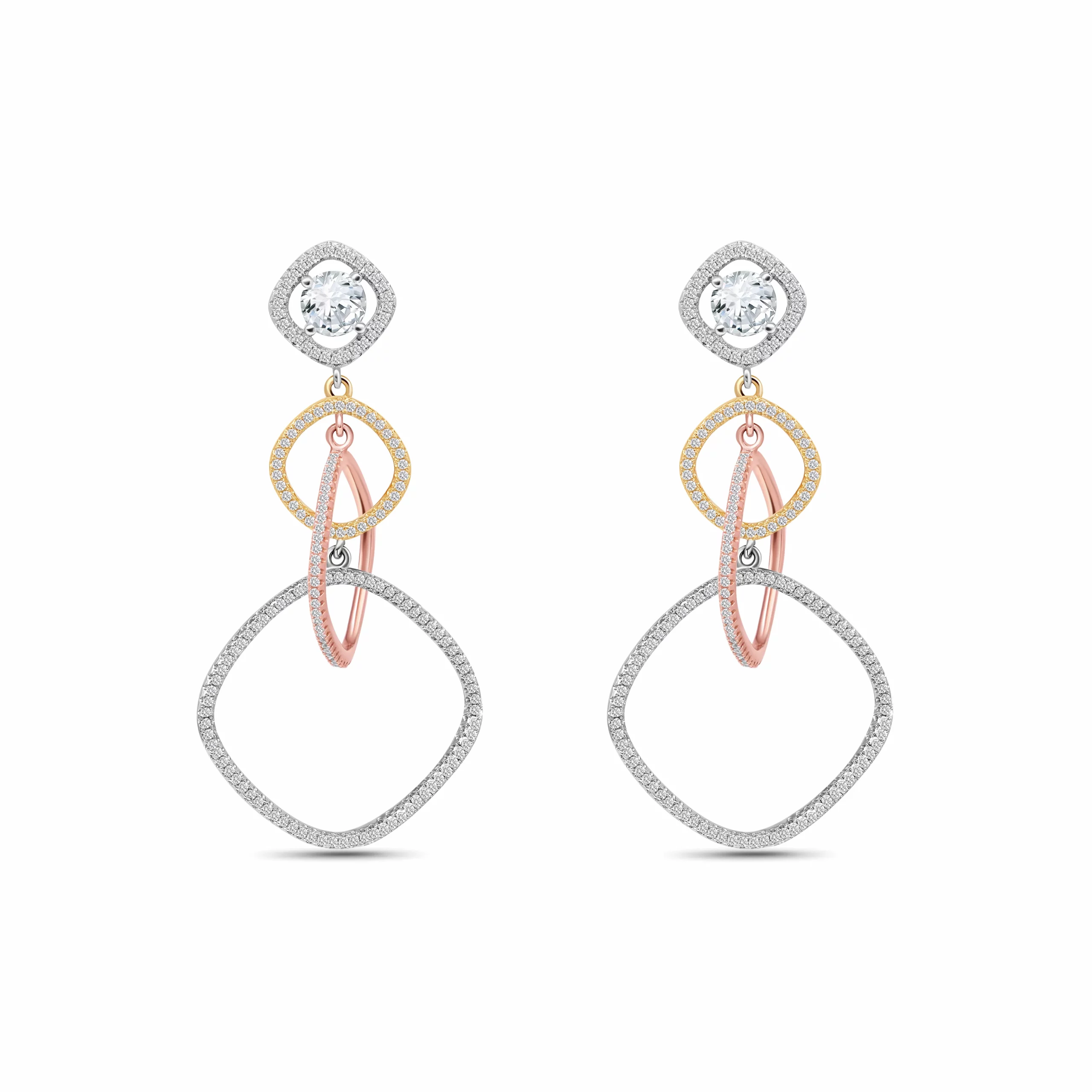 Elevate every occasion with the Trinity Luxe Earrings a symphony of rose, gold and silver tones in a bold geometric silhouette. Dazzling with pave set crystals and a central solitaire sparkle, these 3 tone statement earrings bring red carpet energy to your everyday.